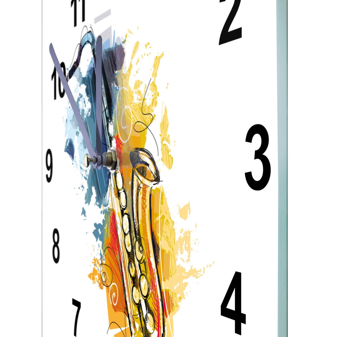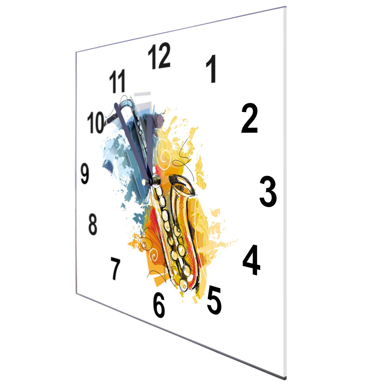 FUNKTION: Mit der banjado Wanduhr aus Glas mit dem Motiv Saxophon behalten Sie die Zeit immer im Blick, stilsicher und zuverlässig erkennen Sie auf einen Blick was die Stunde geschlagen hat. DESIGN: Die schlichte Form der Uhr sowie das individuelle Motiv passen sich hervorragend jedem Wohnraumkonzept an, egal ob klassisch, nostalgisch oder modern. DETAILS: Die Glasuhr ist quadratisch, 30 x 30cm groß und verfügt über ein geräuscharmes Uhrwerk mit schwarzen Zeigern. Das Motiv Saxophon befindet sich effektvoll hinter Glas. NUTZEN: Die banjado Glas Wanduhr verbindet Design und Funktion. Perfekt für Küche, Büro, Wohnzimmer oder Kinderzimmer, haben Sie die Zeit im Blick und eine schöne Wanddekoration. BANJADO: Wir fertigen alle Wanduhren auf Bestellung von Hand, erfüllen dabei auch gern Sonderwünsche. Wir wünschen viel Freude bei der Auswahl eines schönen Motivs. Herzlichst, banjado aus Sachsen