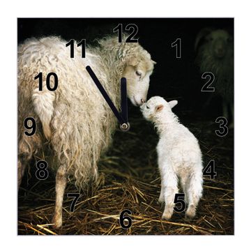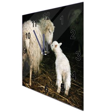 Glasuhr quadratisch Motiv Schaf Und Lamm