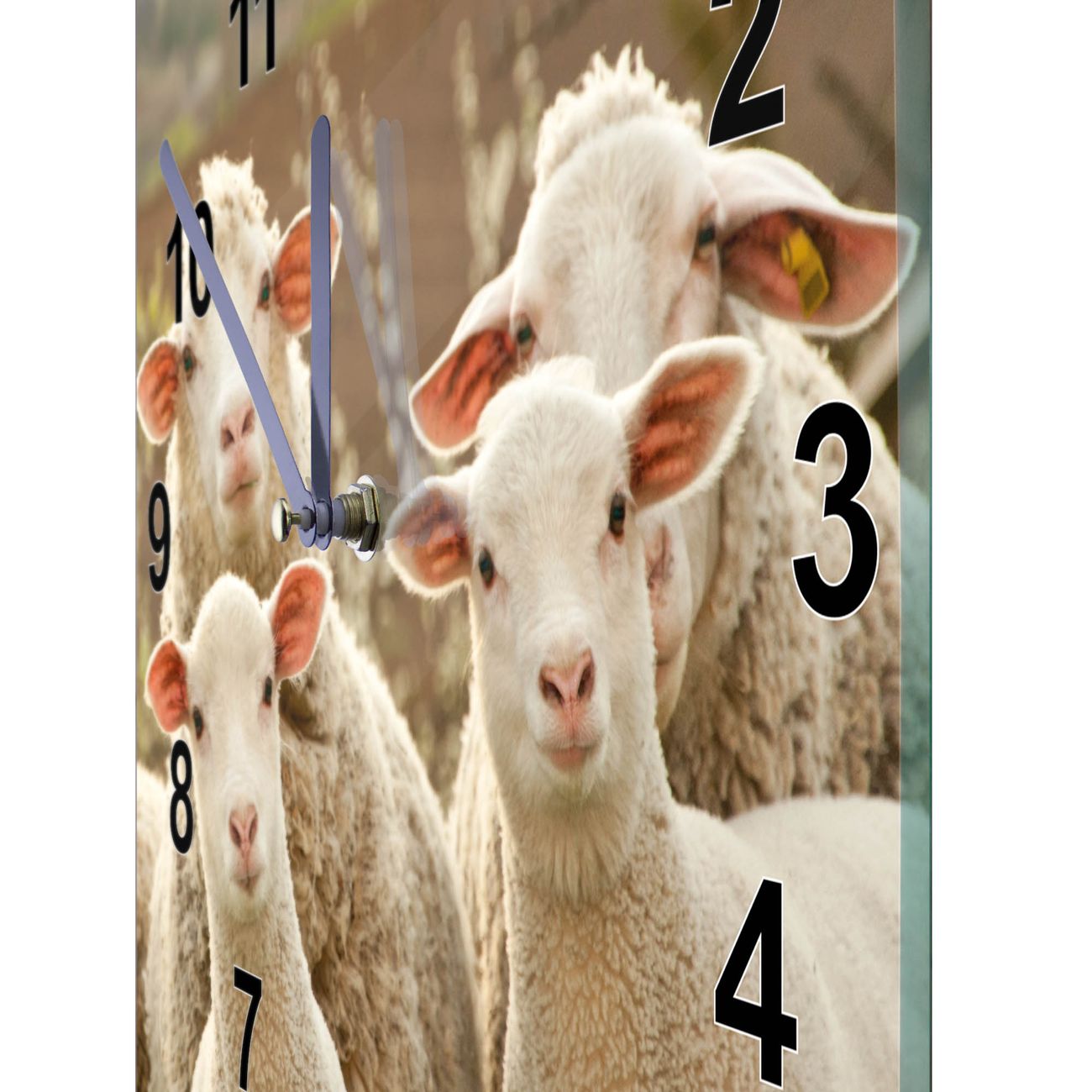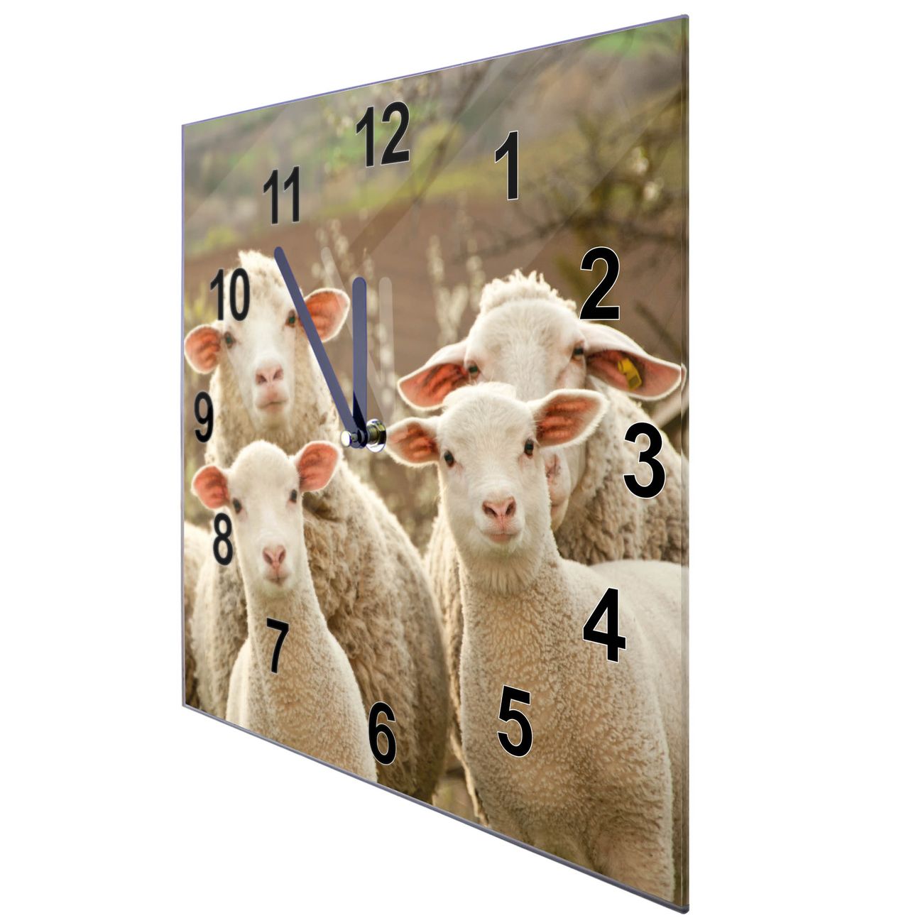 Glasuhr quadratisch Motiv Schaffamilie