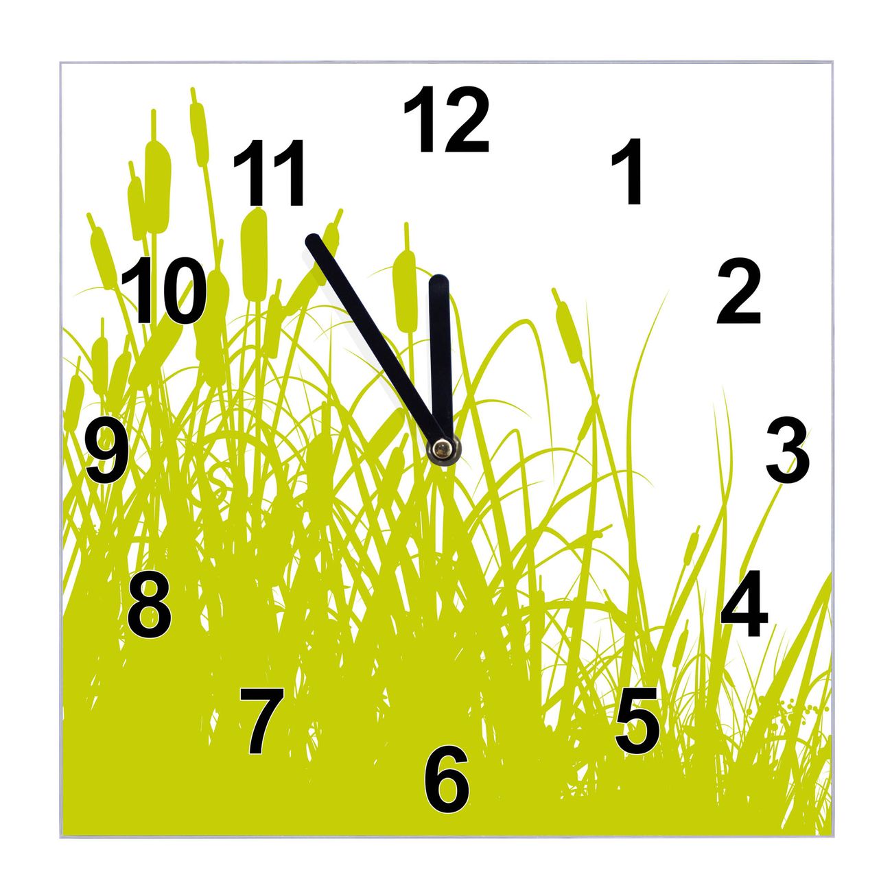 FUNKTION: Mit der banjado Wanduhr aus Glas mit dem Motiv Schilf behalten Sie die Zeit immer im Blick, stilsicher und zuverlässig erkennen Sie auf einen Blick was die Stunde geschlagen hat. DESIGN: Die schlichte Form der Uhr sowie das individuelle Motiv passen sich hervorragend jedem Wohnraumkonzept an, egal ob klassisch, nostalgisch oder modern. DETAILS: Die Glasuhr ist quadratisch, 30 x 30cm groß und verfügt über ein geräuscharmes Uhrwerk mit schwarzen Zeigern. Das Motiv Schilf befindet sich effektvoll hinter Glas. NUTZEN: Die banjado Glas Wanduhr verbindet Design und Funktion. Perfekt für Küche, Büro, Wohnzimmer oder Kinderzimmer, haben Sie die Zeit im Blick und eine schöne Wanddekoration. BANJADO: Wir fertigen alle Wanduhren auf Bestellung von Hand, erfüllen dabei auch gern Sonderwünsche. Wir wünschen viel Freude bei der Auswahl eines schönen Motivs. Herzlichst, banjado aus Sachsen