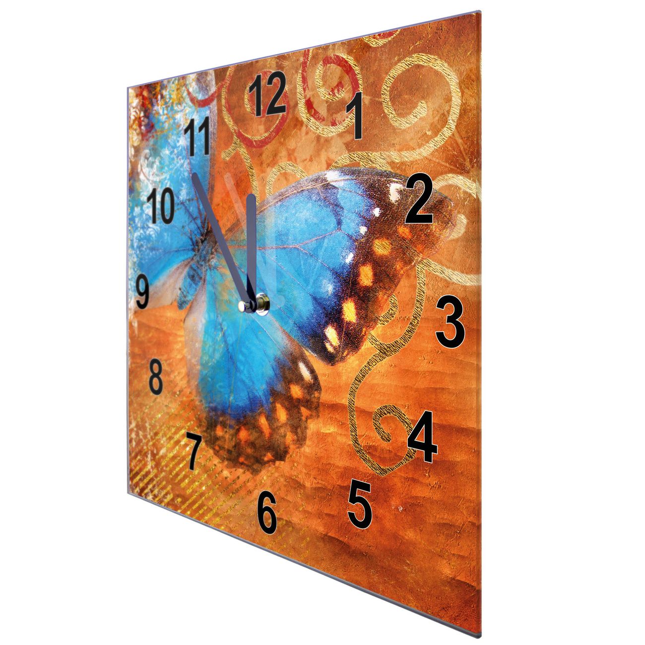 FUNKTION: Mit der banjado Wanduhr aus Glas mit dem Motiv Schmetterling behalten Sie die Zeit immer im Blick, stilsicher und zuverlässig erkennen Sie auf einen Blick was die Stunde geschlagen hat. DESIGN: Die schlichte Form der Uhr sowie das individuelle Motiv passen sich hervorragend jedem Wohnraumkonzept an, egal ob klassisch, nostalgisch oder modern. DETAILS: Die Glasuhr ist quadratisch, 30 x 30cm groß und verfügt über ein geräuscharmes Uhrwerk mit schwarzen Zeigern. Das Motiv Schmetterling befindet sich effektvoll hinter Glas. NUTZEN: Die banjado Glas Wanduhr verbindet Design und Funktion. Perfekt für Küche, Büro, Wohnzimmer oder Kinderzimmer, haben Sie die Zeit im Blick und eine schöne Wanddekoration. BANJADO: Wir fertigen alle Wanduhren auf Bestellung von Hand, erfüllen dabei auch gern Sonderwünsche. Wir wünschen viel Freude bei der Auswahl eines schönen Motivs. Herzlichst, banjado aus Sachsen