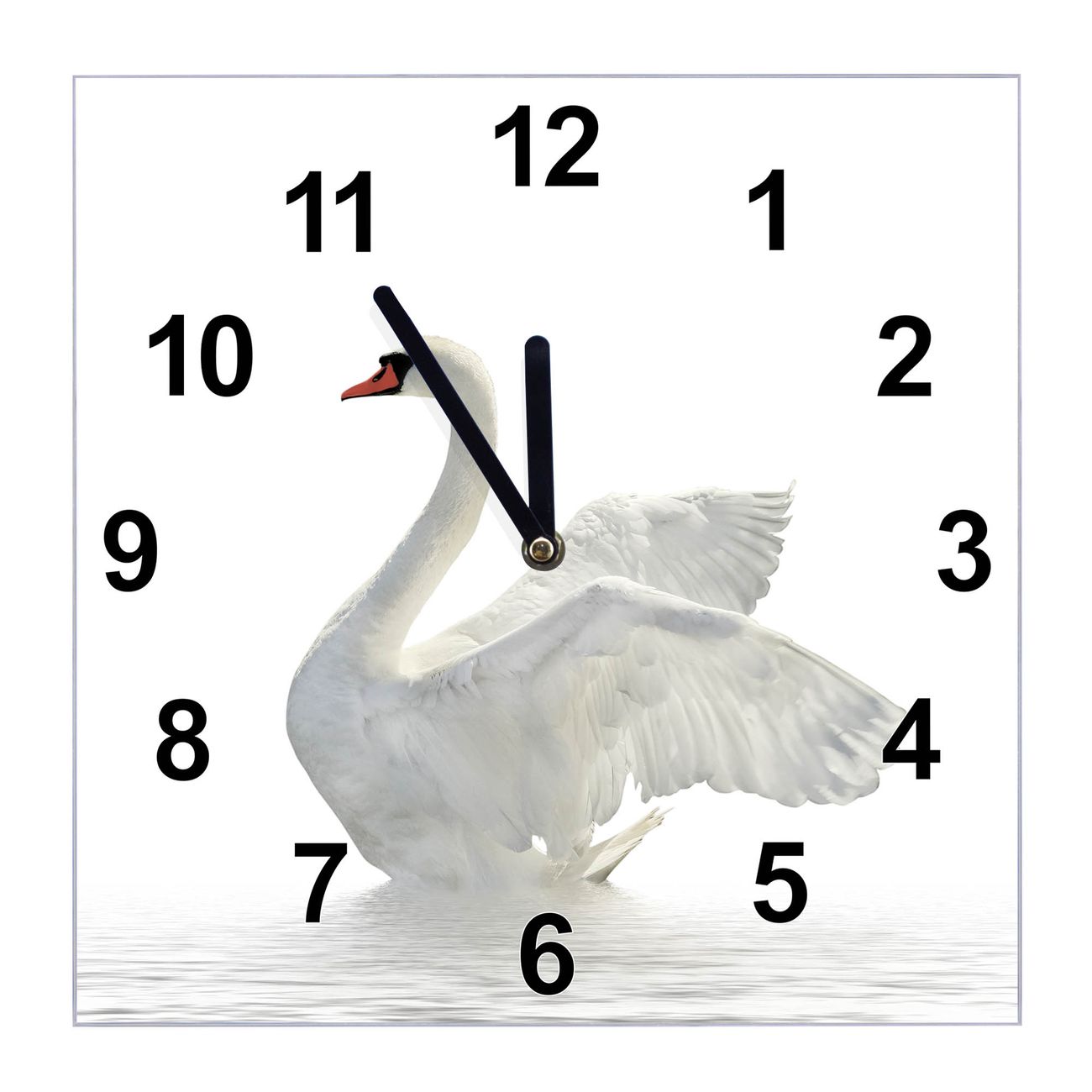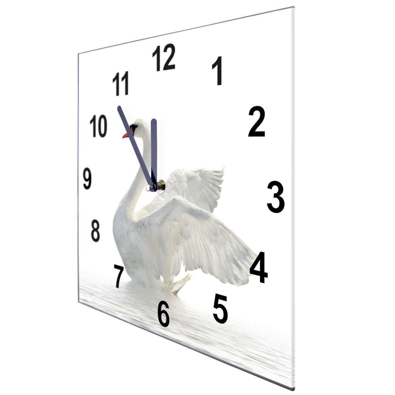 FUNKTION: Mit der banjado Wanduhr aus Glas mit dem Motiv Schwan behalten Sie die Zeit immer im Blick, stilsicher und zuverlässig erkennen Sie auf einen Blick was die Stunde geschlagen hat. DESIGN: Die schlichte Form der Uhr sowie das individuelle Motiv passen sich hervorragend jedem Wohnraumkonzept an, egal ob klassisch, nostalgisch oder modern. DETAILS: Die Glasuhr ist quadratisch, 30 x 30cm groß und verfügt über ein geräuscharmes Uhrwerk mit schwarzen Zeigern. Das Motiv Schwan befindet sich effektvoll hinter Glas. NUTZEN: Die banjado Glas Wanduhr verbindet Design und Funktion. Perfekt für Küche, Büro, Wohnzimmer oder Kinderzimmer, haben Sie die Zeit im Blick und eine schöne Wanddekoration. BANJADO: Wir fertigen alle Wanduhren auf Bestellung von Hand, erfüllen dabei auch gern Sonderwünsche. Wir wünschen viel Freude bei der Auswahl eines schönen Motivs. Herzlichst, banjado aus Sachsen