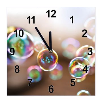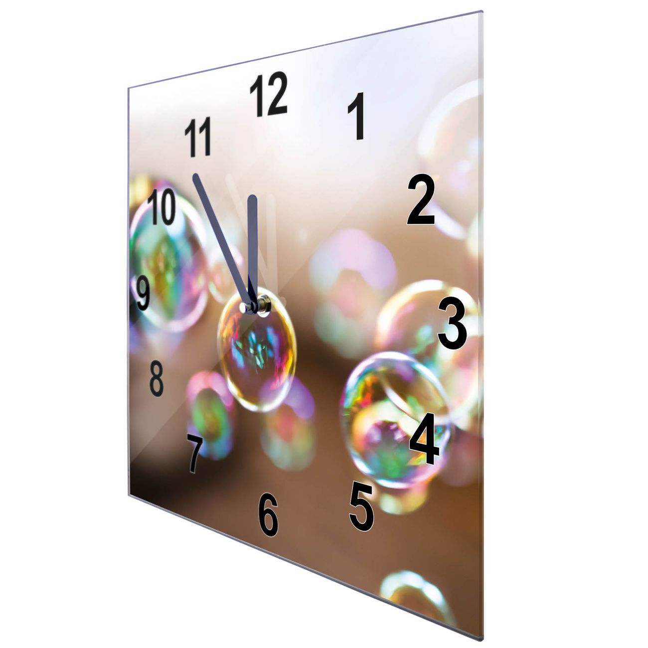 FUNKTION: Mit der banjado Wanduhr aus Glas mit dem Motiv Seifenblasen behalten Sie die Zeit immer im Blick, stilsicher und zuverlässig erkennen Sie auf einen Blick was die Stunde geschlagen hat. DESIGN: Die schlichte Form der Uhr sowie das individuelle Motiv passen sich hervorragend jedem Wohnraumkonzept an, egal ob klassisch, nostalgisch oder modern. DETAILS: Die Glasuhr ist quadratisch, 30 x 30cm groß und verfügt über ein geräuscharmes Uhrwerk mit schwarzen Zeigern. Das Motiv Seifenblasen befindet sich effektvoll hinter Glas. NUTZEN: Die banjado Glas Wanduhr verbindet Design und Funktion. Perfekt für Küche, Büro, Wohnzimmer oder Kinderzimmer, haben Sie die Zeit im Blick und eine schöne Wanddekoration. BANJADO: Wir fertigen alle Wanduhren auf Bestellung von Hand, erfüllen dabei auch gern Sonderwünsche. Wir wünschen viel Freude bei der Auswahl eines schönen Motivs. Herzlichst, banjado aus Sachsen