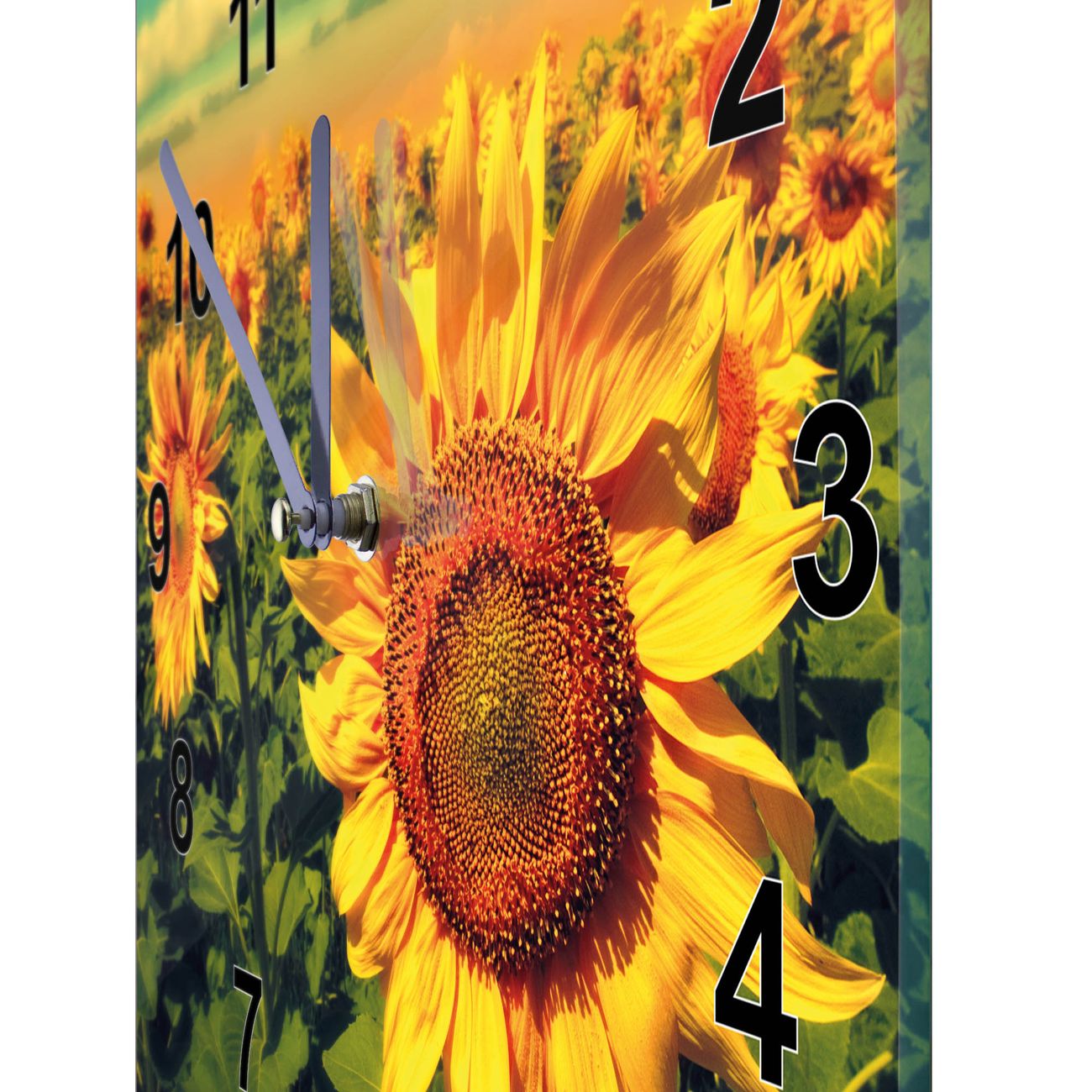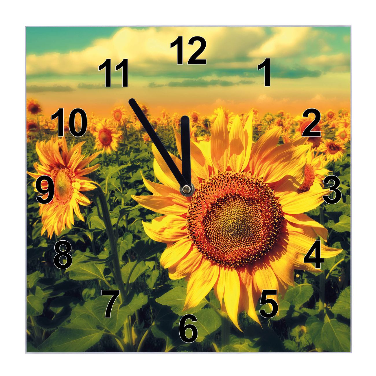 FUNKTION: Mit der banjado Wanduhr aus Glas mit dem Motiv Sonnenblumen behalten Sie die Zeit immer im Blick, stilsicher und zuverlässig erkennen Sie auf einen Blick was die Stunde geschlagen hat. DESIGN: Die schlichte Form der Uhr sowie das individuelle Motiv passen sich hervorragend jedem Wohnraumkonzept an, egal ob klassisch, nostalgisch oder modern. DETAILS: Die Glasuhr ist quadratisch, 30 x 30cm groß und verfügt über ein geräuscharmes Uhrwerk mit schwarzen Zeigern. Das Motiv Sonnenblumen befindet sich effektvoll hinter Glas. NUTZEN: Die banjado Glas Wanduhr verbindet Design und Funktion. Perfekt für Küche, Büro, Wohnzimmer oder Kinderzimmer, haben Sie die Zeit im Blick und eine schöne Wanddekoration. BANJADO: Wir fertigen alle Wanduhren auf Bestellung von Hand, erfüllen dabei auch gern Sonderwünsche. Wir wünschen viel Freude bei der Auswahl eines schönen Motivs. Herzlichst, banjado aus Sachsen