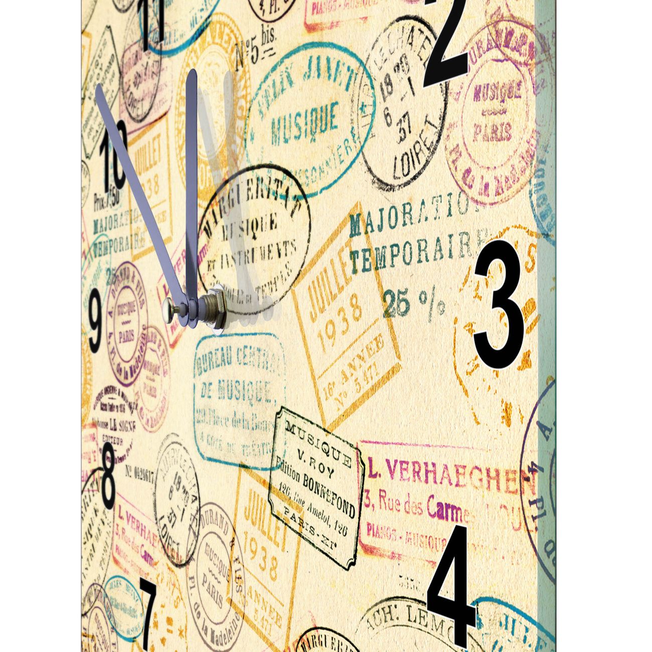 Glasuhr quadratisch Motiv Stempel