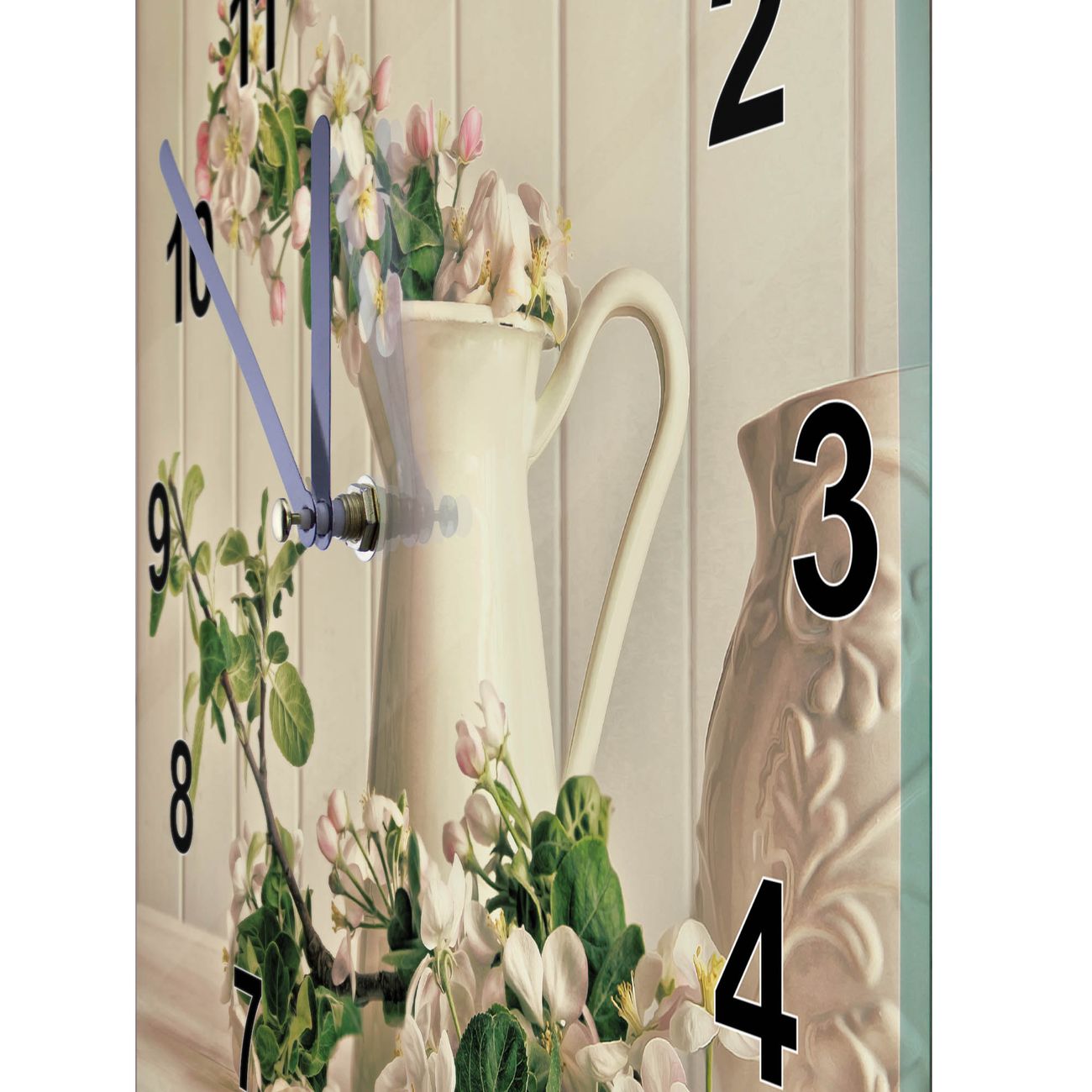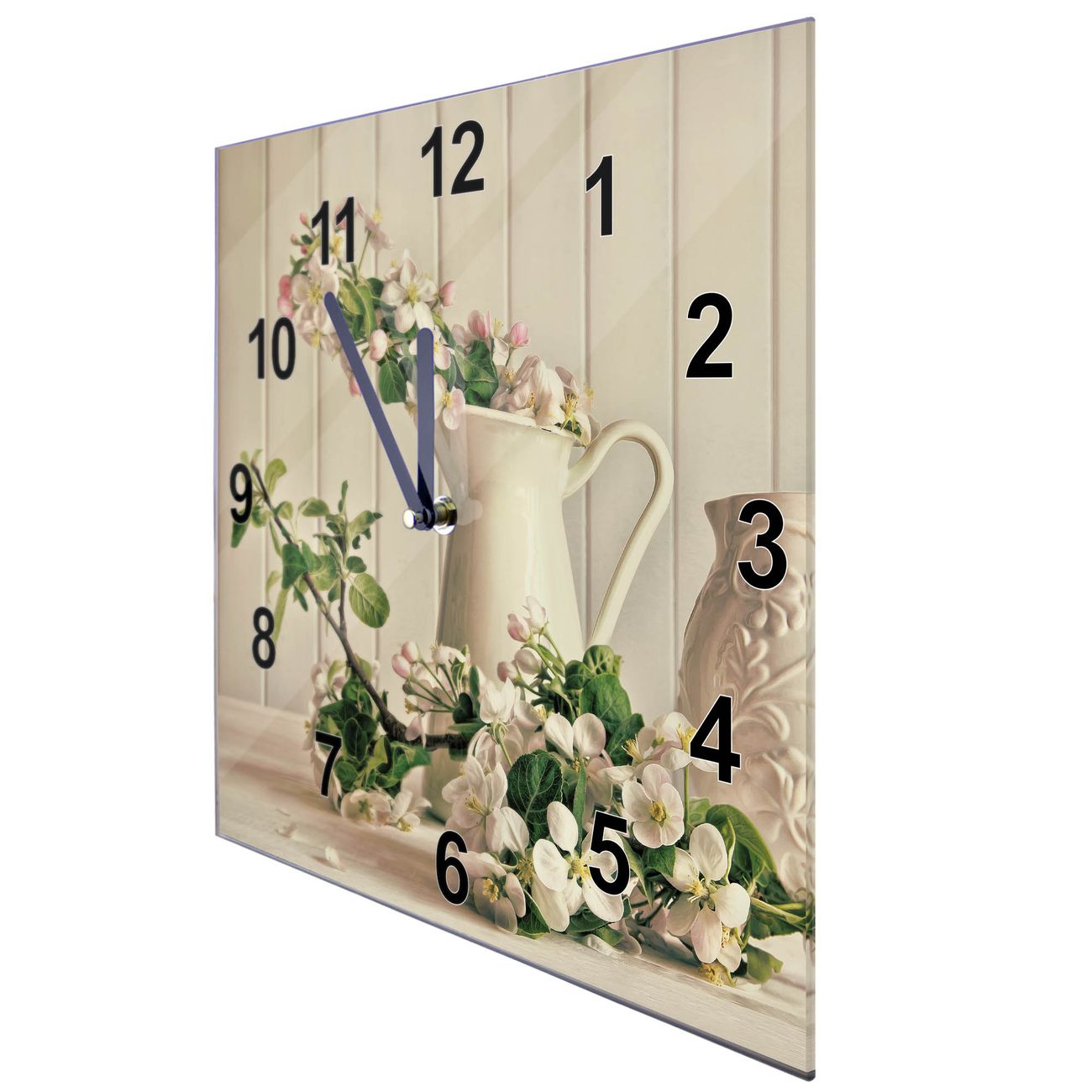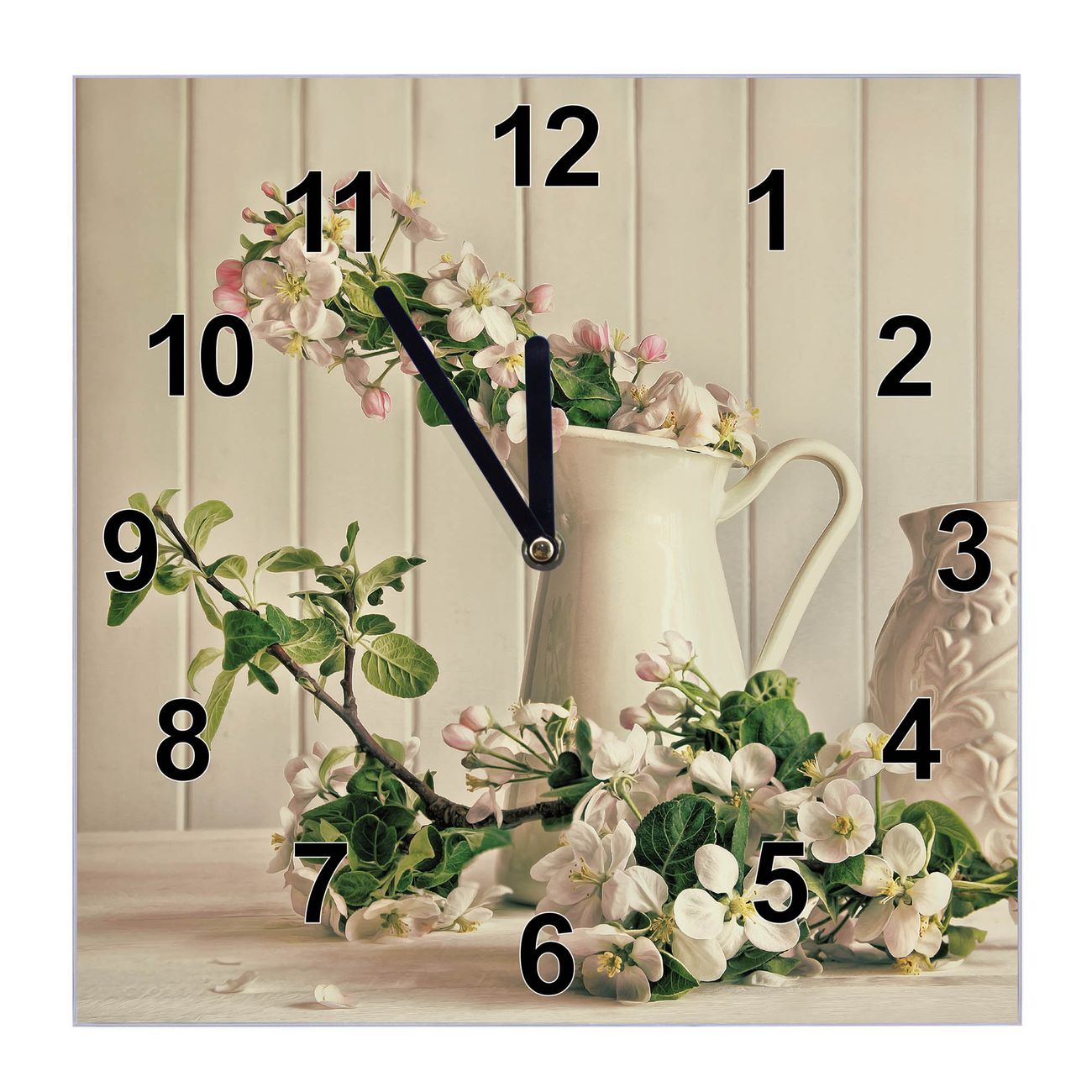Glasuhr quadratisch Motiv Stillleben Kirschblüten