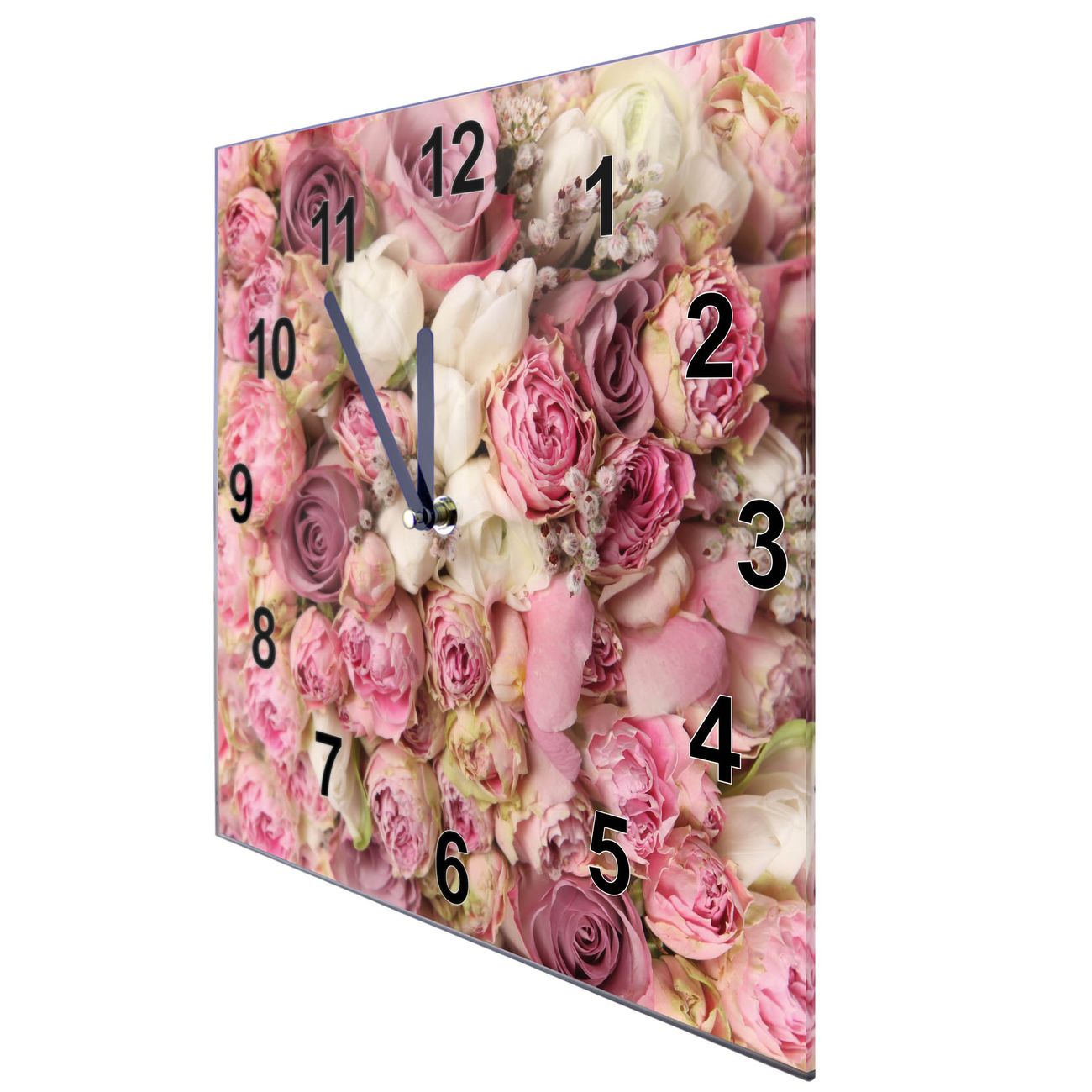 Glasuhr quadratisch Motiv Strauss Rosen
