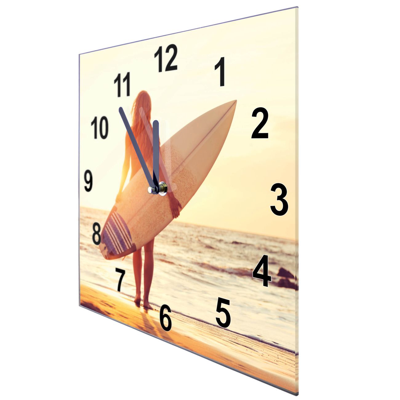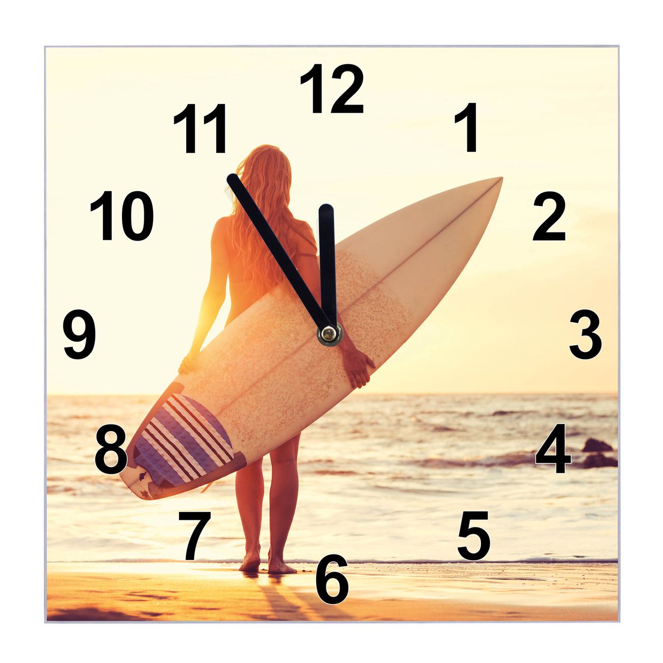 Glasuhr quadratisch Motiv Surfer Girl