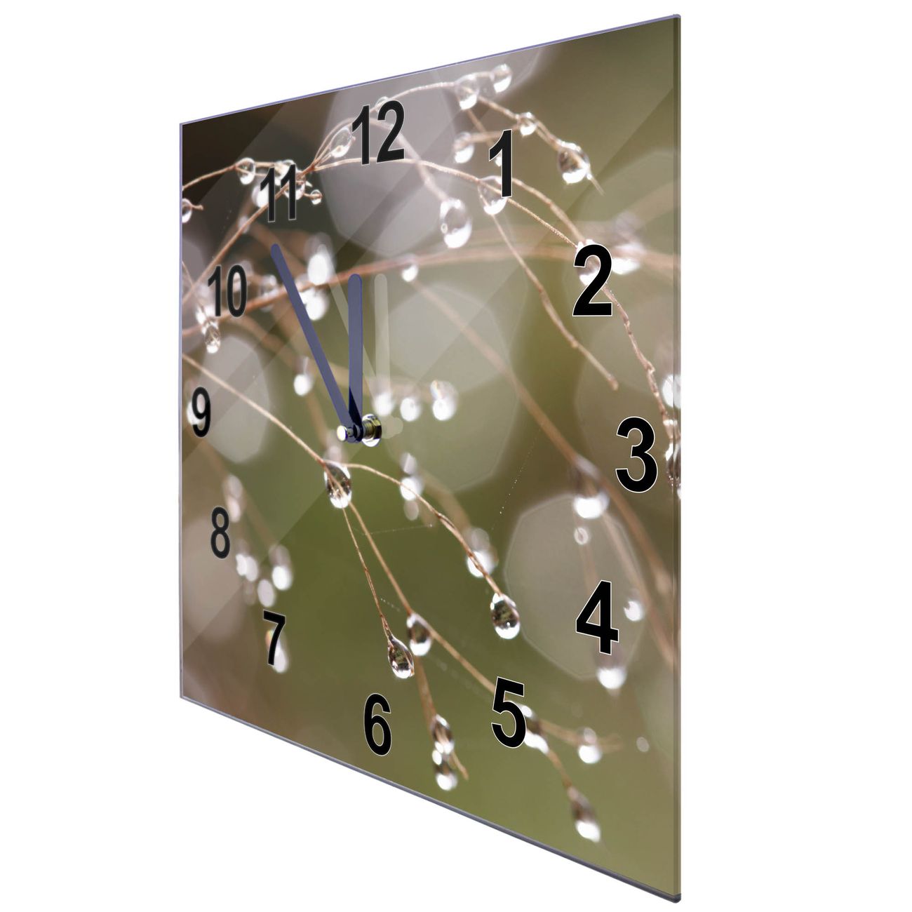 FUNKTION: Mit der banjado Wanduhr aus Glas mit dem Motiv Tau Auf Zweigen behalten Sie die Zeit immer im Blick, stilsicher und zuverlässig erkennen Sie auf einen Blick was die Stunde geschlagen hat. DESIGN: Die schlichte Form der Uhr sowie das individuelle Motiv passen sich hervorragend jedem Wohnraumkonzept an, egal ob klassisch, nostalgisch oder modern. DETAILS: Die Glasuhr ist quadratisch, 30 x 30cm groß und verfügt über ein geräuscharmes Uhrwerk mit schwarzen Zeigern. Das Motiv Tau Auf Zweigen befindet sich effektvoll hinter Glas. NUTZEN: Die banjado Glas Wanduhr verbindet Design und Funktion. Perfekt für Küche, Büro, Wohnzimmer oder Kinderzimmer, haben Sie die Zeit im Blick und eine schöne Wanddekoration. BANJADO: Wir fertigen alle Wanduhren auf Bestellung von Hand, erfüllen dabei auch gern Sonderwünsche. Wir wünschen viel Freude bei der Auswahl eines schönen Motivs. Herzlichst, banjado aus Sachsen