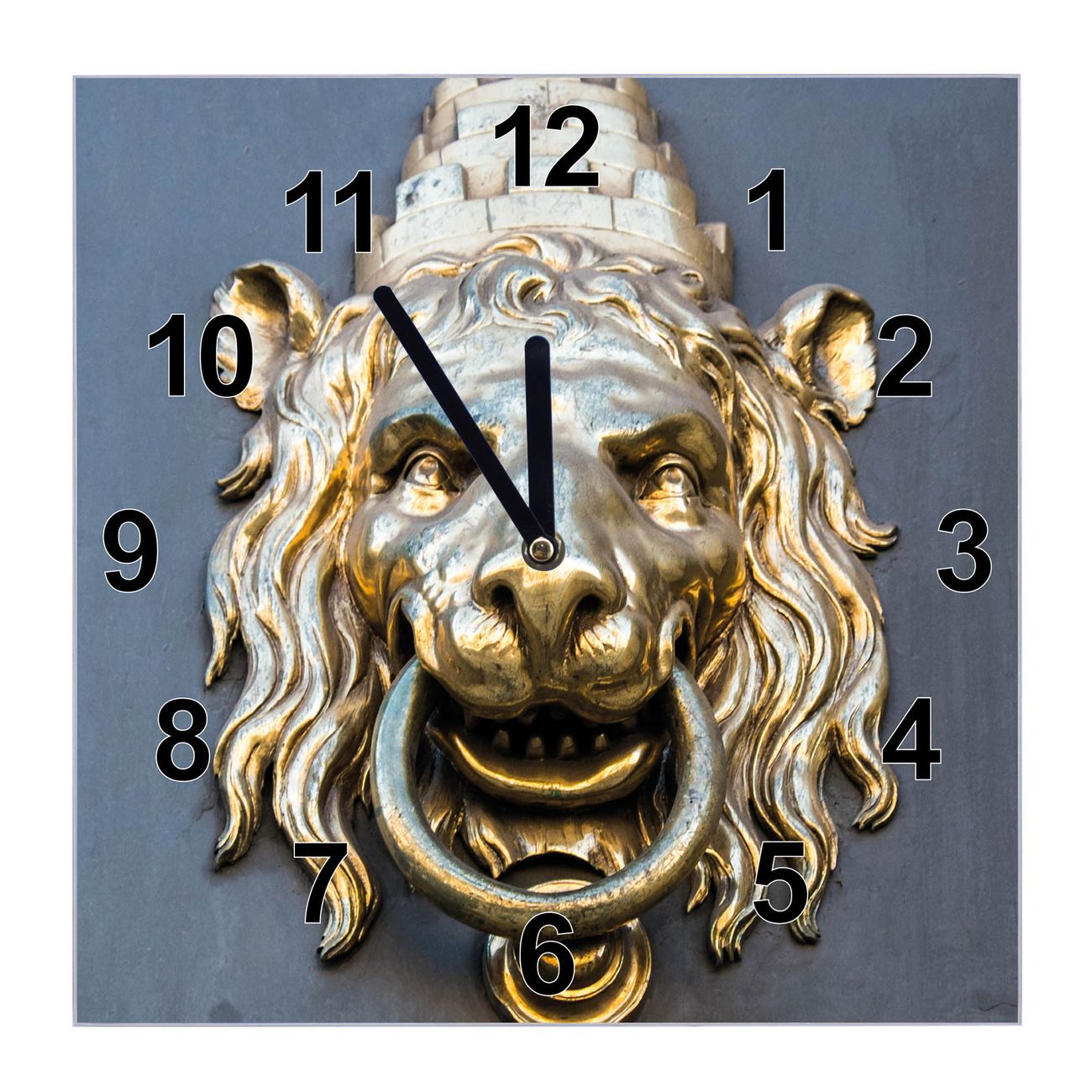 Glasuhr quadratisch Motiv Türklopfer Löwe
