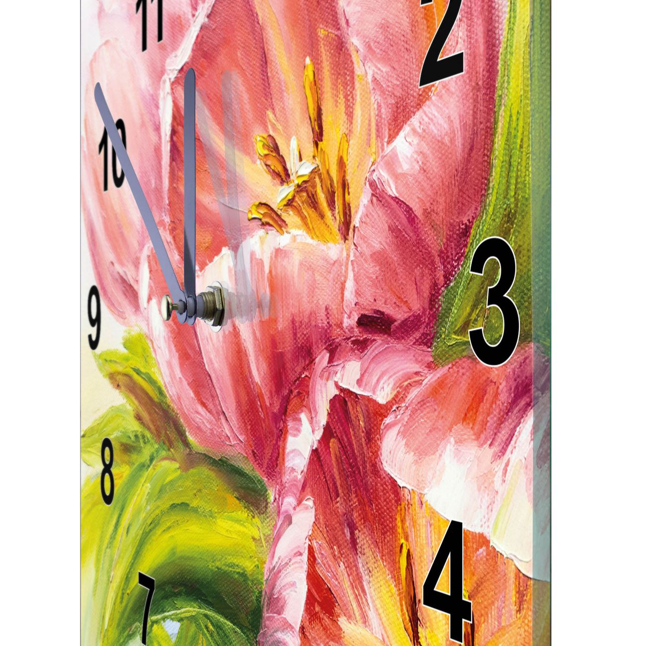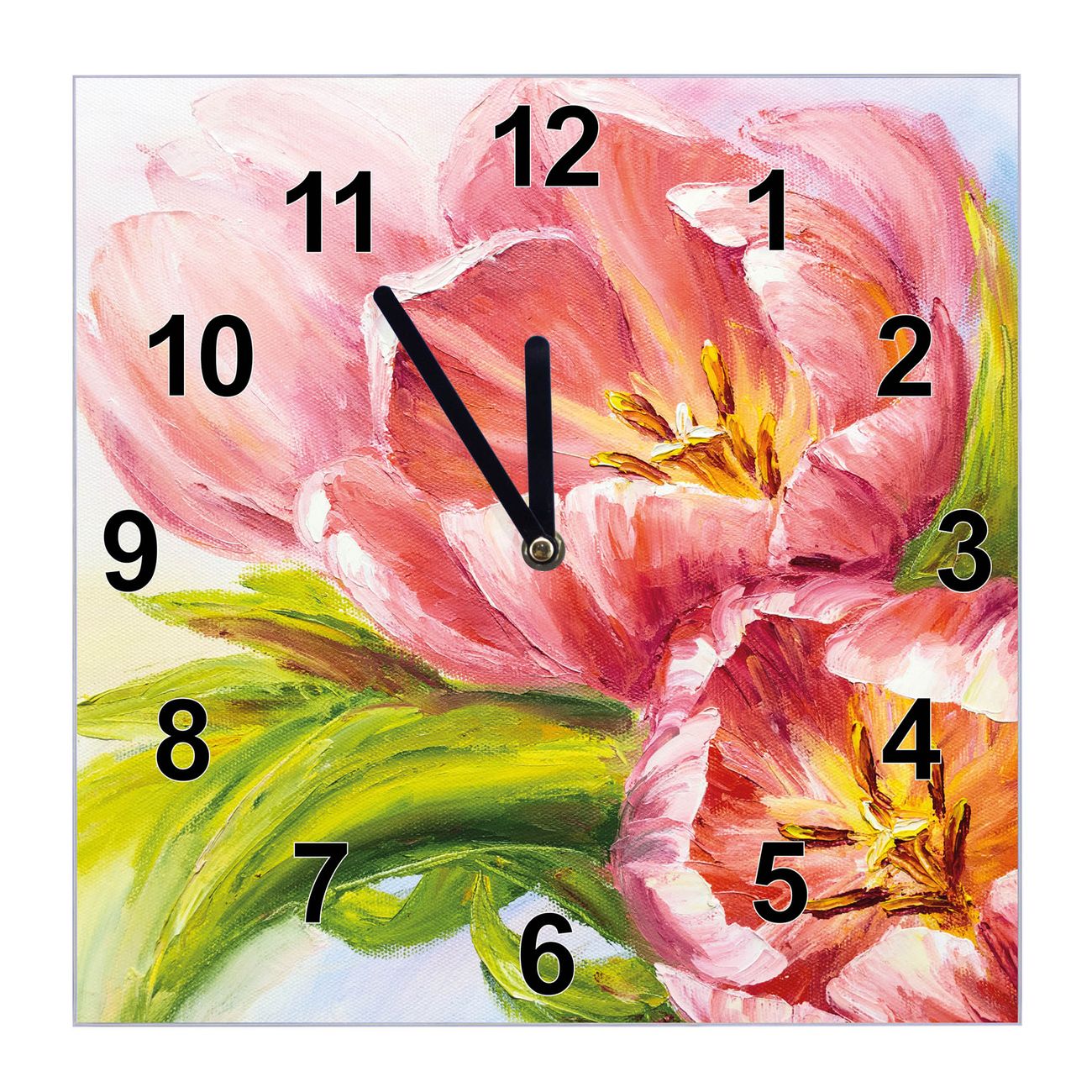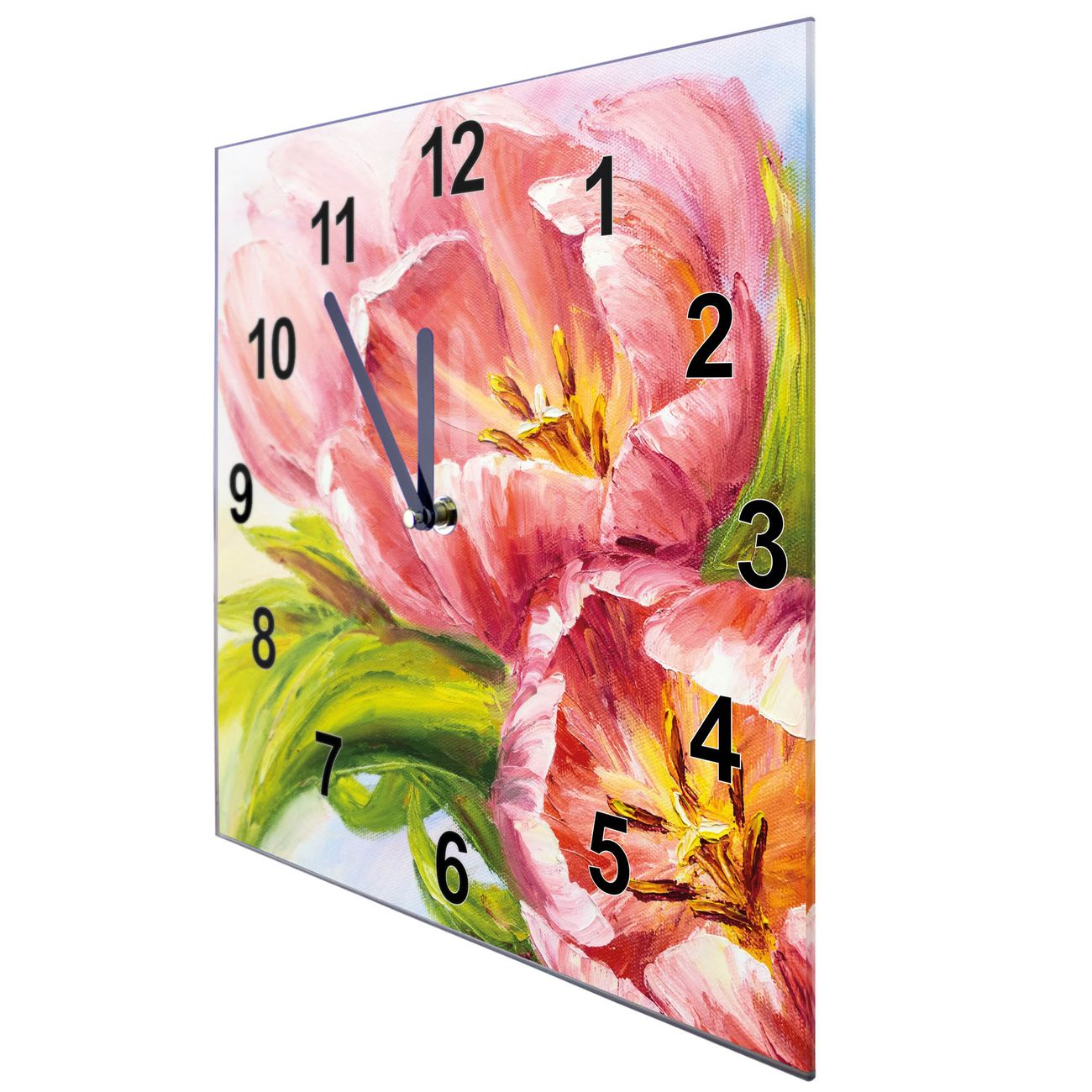Glasuhr quadratisch Motiv Tulpen Detail
