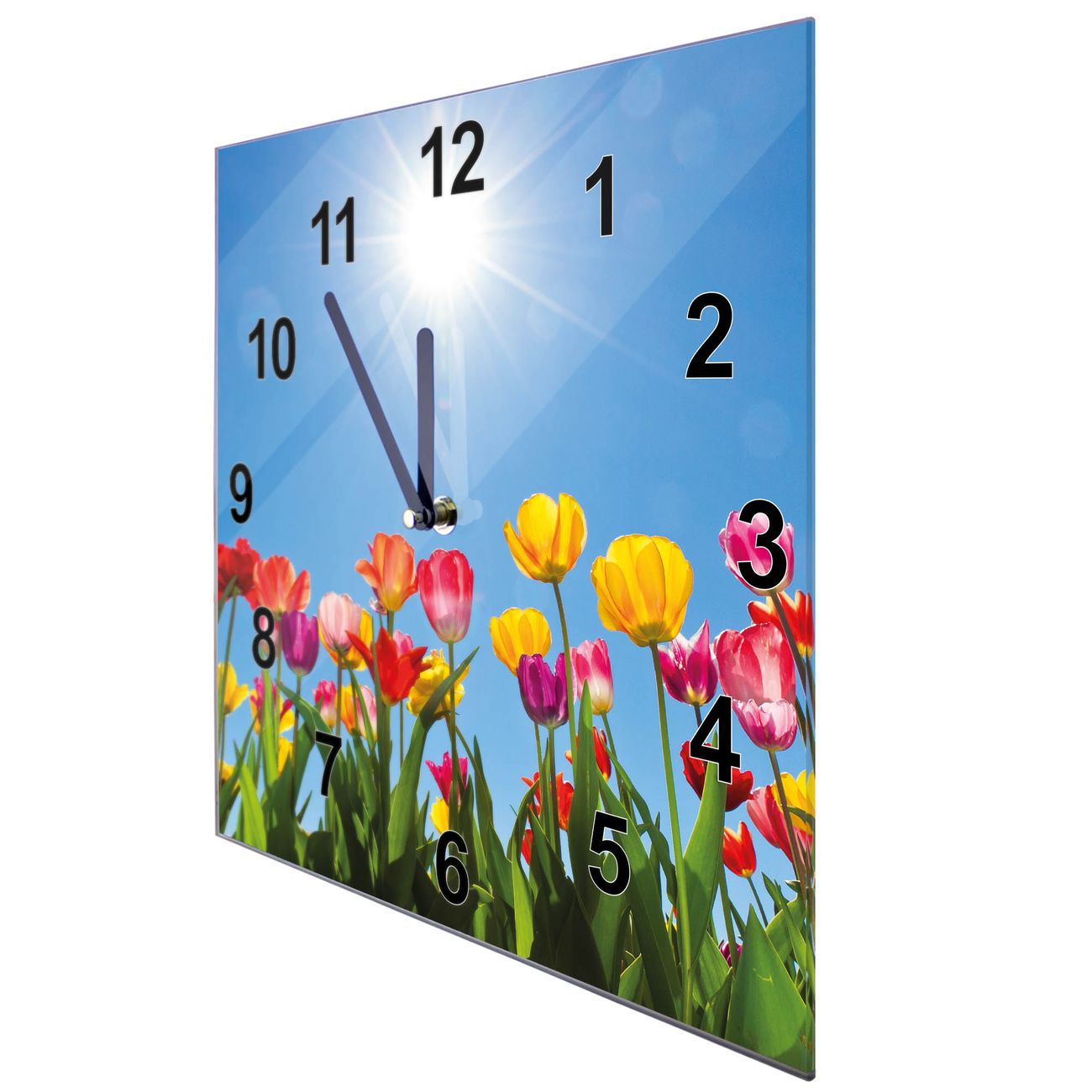 Glasuhr quadratisch Motiv Tulpenmeer