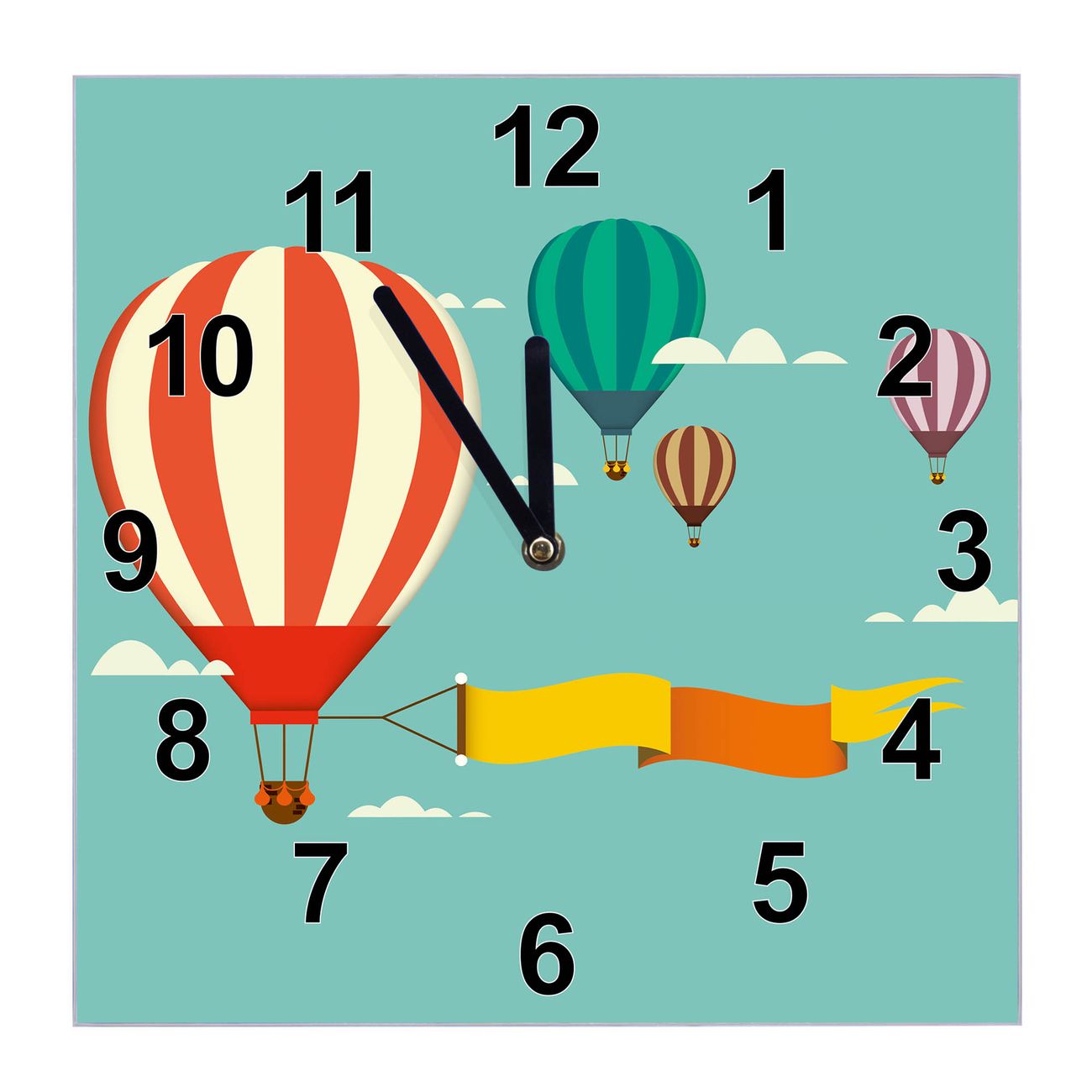 Glasuhr quadratisch Motiv Vier Ballons