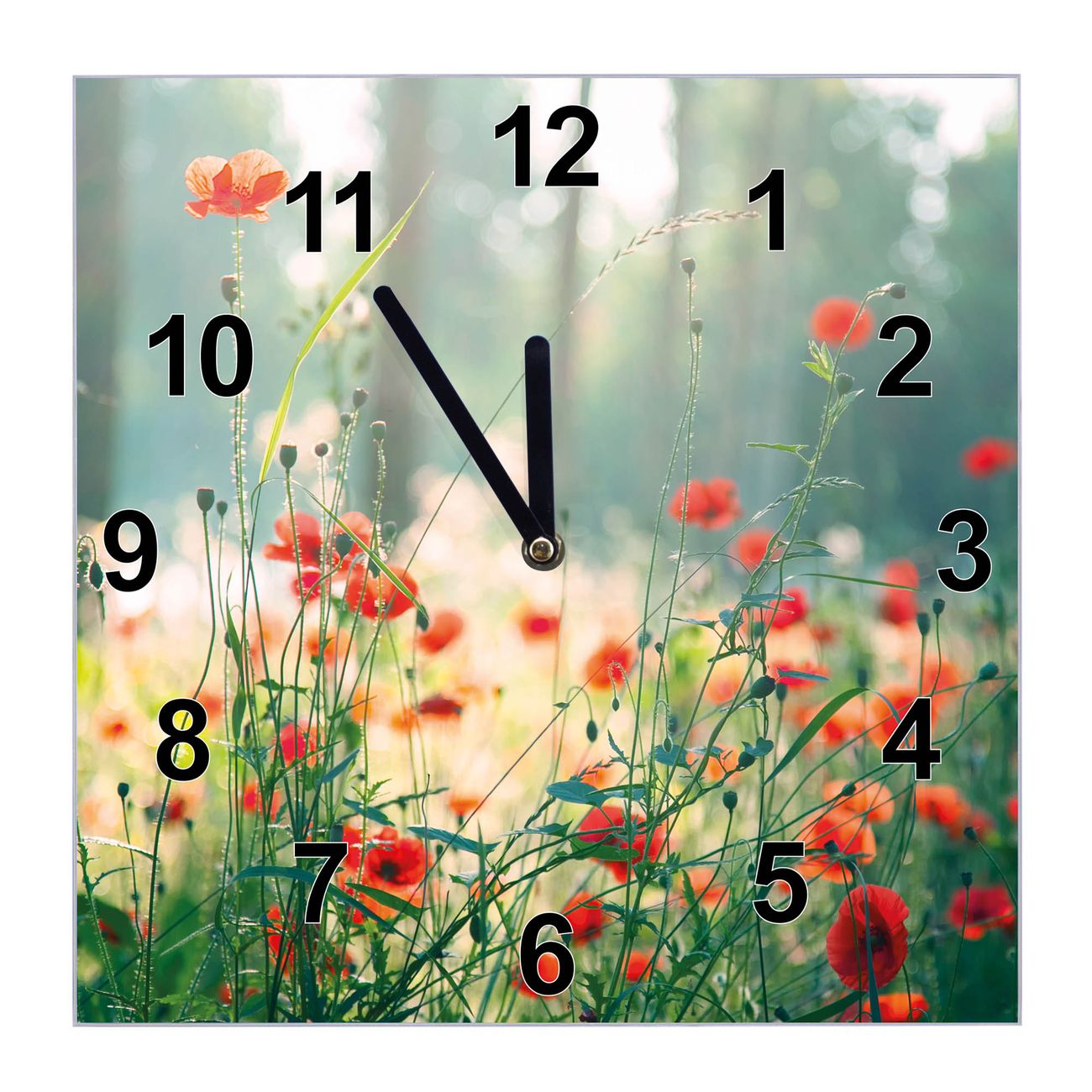 Glasuhr quadratisch Motiv Waldmohn
