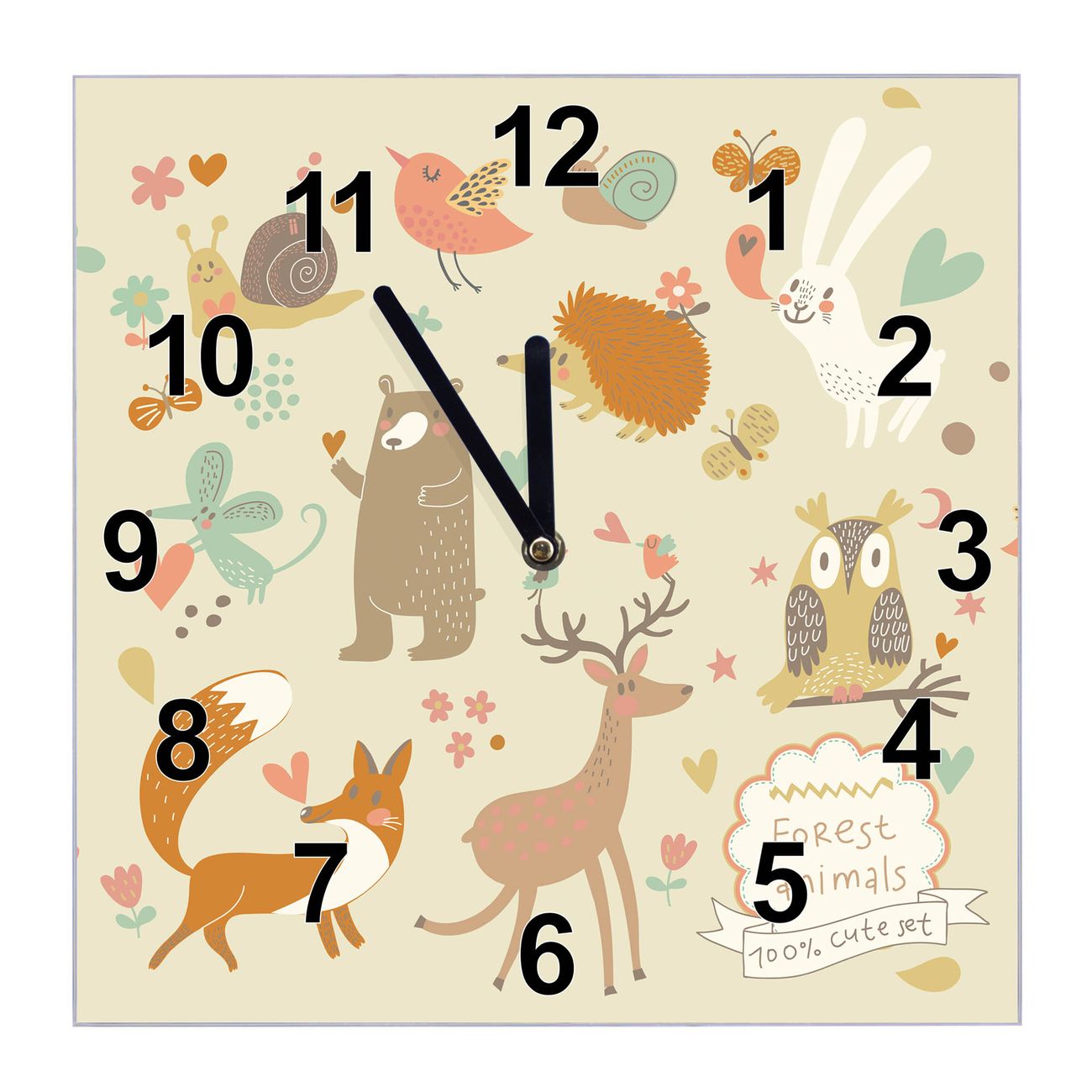 Glasuhr quadratisch Motiv Waldtiere