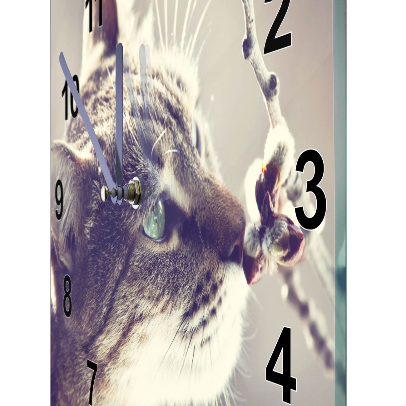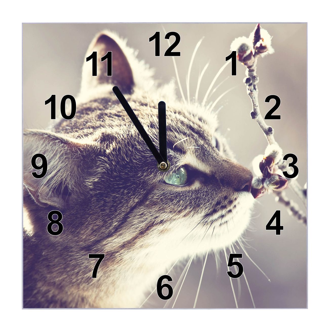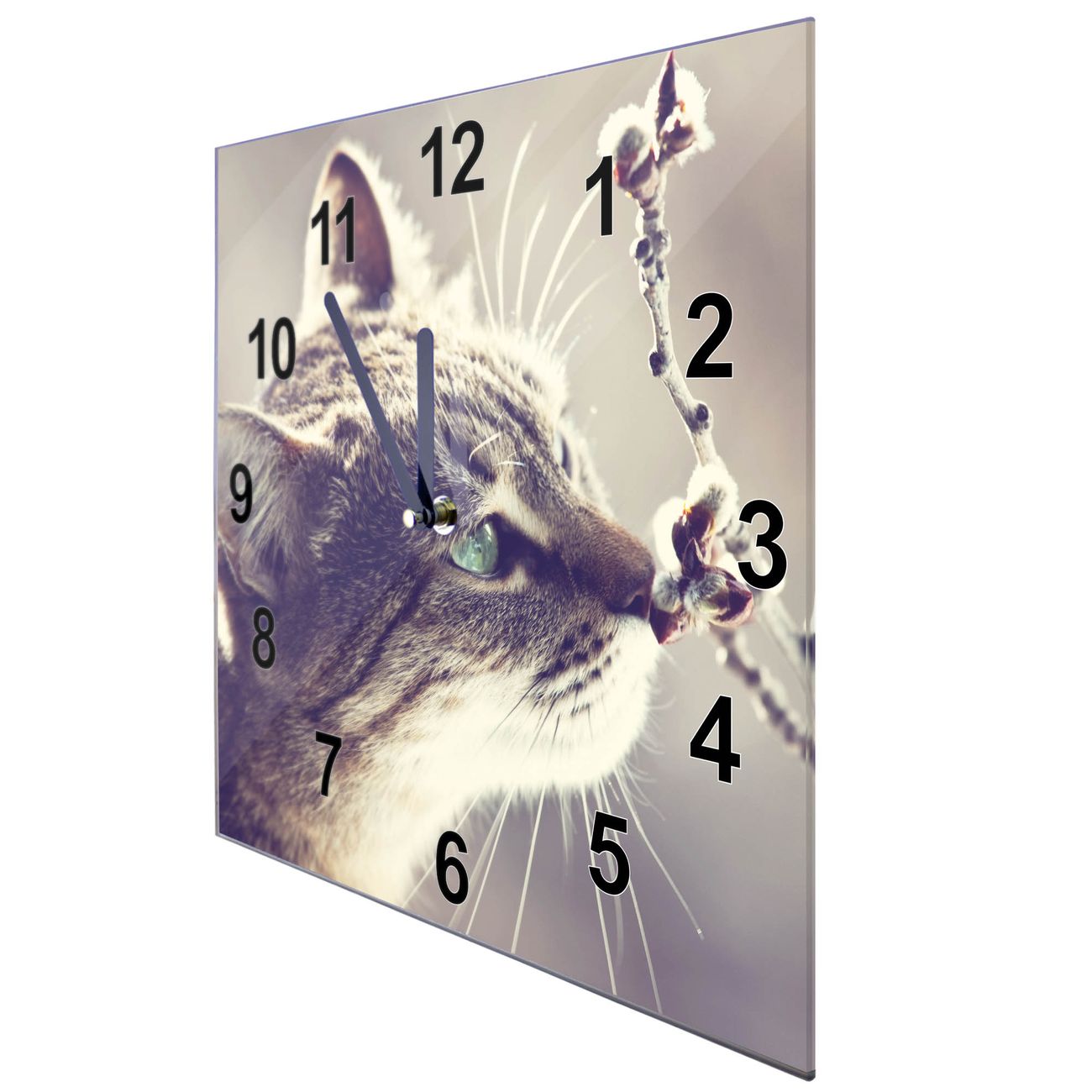 Glasuhr quadratisch Motiv Weidenkätzchen