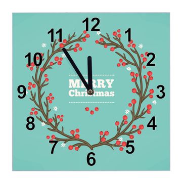 Glasuhr quadratisch Motiv Weihnachtsranke