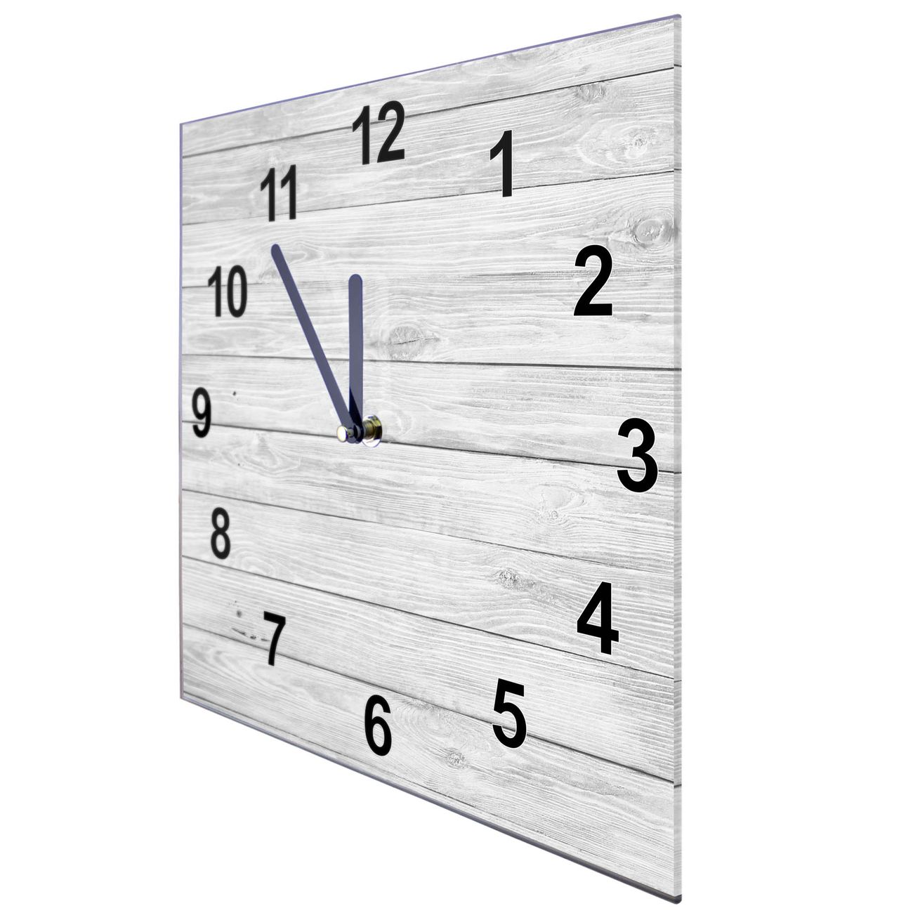 FUNKTION: Mit der banjado Wanduhr aus Glas mit dem Motiv Weiß Gebeizt behalten Sie die Zeit immer im Blick, stilsicher und zuverlässig erkennen Sie auf einen Blick was die Stunde geschlagen hat. DESIGN: Die schlichte Form der Uhr sowie das individuelle Motiv passen sich hervorragend jedem Wohnraumkonzept an, egal ob klassisch, nostalgisch oder modern. DETAILS: Die Glasuhr ist quadratisch, 30 x 30cm groß und verfügt über ein geräuscharmes Uhrwerk mit schwarzen Zeigern. Das Motiv Weiß Gebeizt befindet sich effektvoll hinter Glas. NUTZEN: Die banjado Glas Wanduhr verbindet Design und Funktion. Perfekt für Küche, Büro, Wohnzimmer oder Kinderzimmer, haben Sie die Zeit im Blick und eine schöne Wanddekoration. BANJADO: Wir fertigen alle Wanduhren auf Bestellung von Hand, erfüllen dabei auch gern Sonderwünsche. Wir wünschen viel Freude bei der Auswahl eines schönen Motivs. Herzlichst, banjado aus Sachsen
