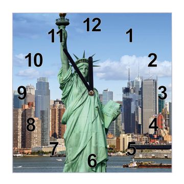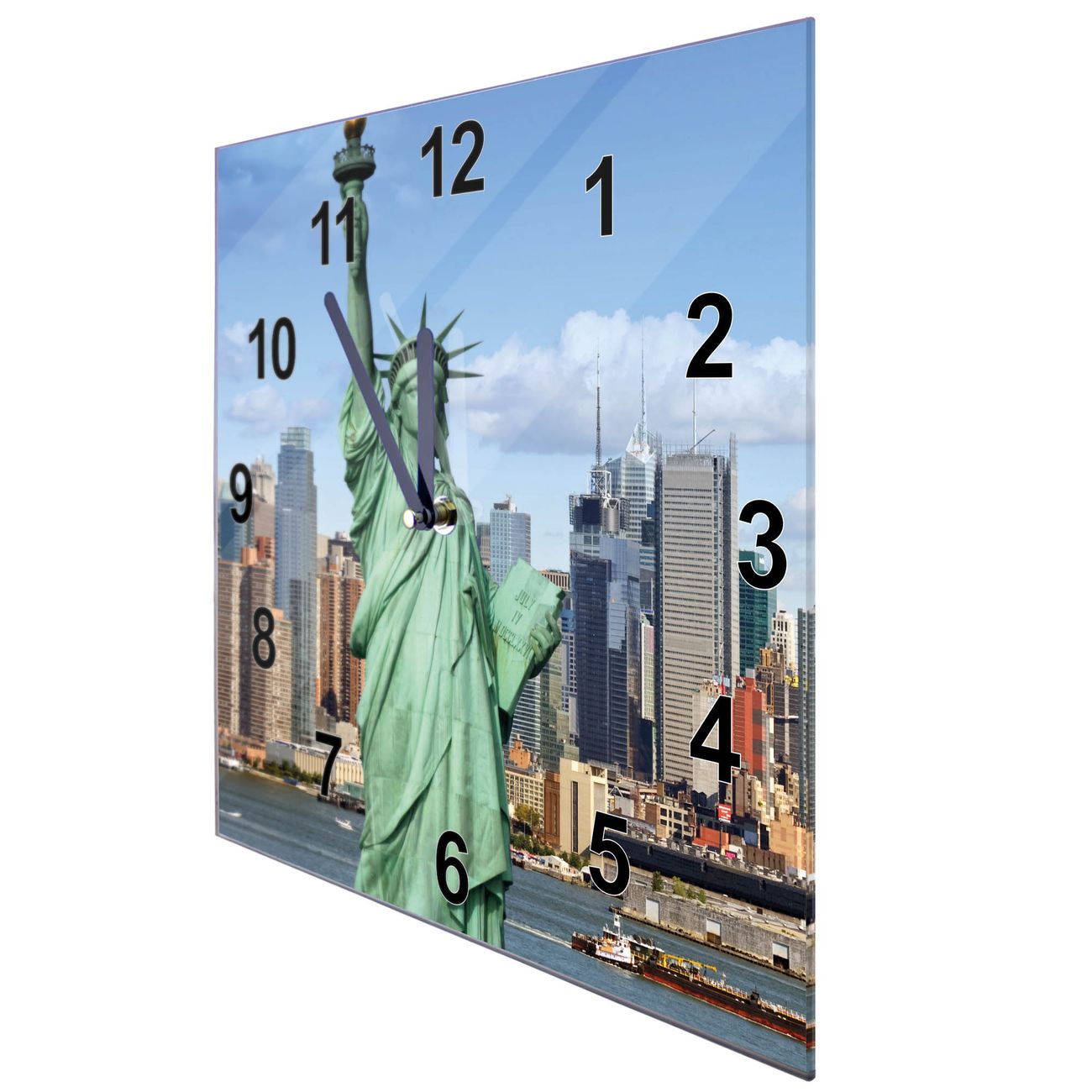 FUNKTION: Mit der banjado Wanduhr aus Glas mit dem Motiv Welcome To NY behalten Sie die Zeit immer im Blick, stilsicher und zuverlässig erkennen Sie auf einen Blick was die Stunde geschlagen hat. DESIGN: Die schlichte Form der Uhr sowie das individuelle Motiv passen sich hervorragend jedem Wohnraumkonzept an, egal ob klassisch, nostalgisch oder modern. DETAILS: Die Glasuhr ist quadratisch, 30 x 30cm groß und verfügt über ein geräuscharmes Uhrwerk mit schwarzen Zeigern. Das Motiv Welcome To NY befindet sich effektvoll hinter Glas. NUTZEN: Die banjado Glas Wanduhr verbindet Design und Funktion. Perfekt für Küche, Büro, Wohnzimmer oder Kinderzimmer, haben Sie die Zeit im Blick und eine schöne Wanddekoration. BANJADO: Wir fertigen alle Wanduhren auf Bestellung von Hand, erfüllen dabei auch gern Sonderwünsche. Wir wünschen viel Freude bei der Auswahl eines schönen Motivs. Herzlichst, banjado aus Sachsen