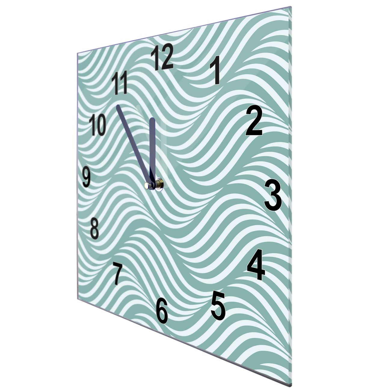Glasuhr quadratisch Motiv Wellen Lindgrün