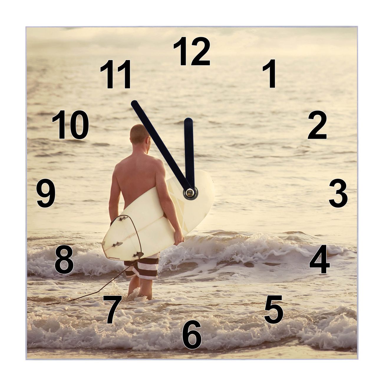 Glasuhr quadratisch Motiv Wellenreiten Gehen