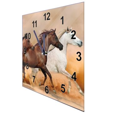 Glasuhr quadratisch Motiv Wilde Pferde