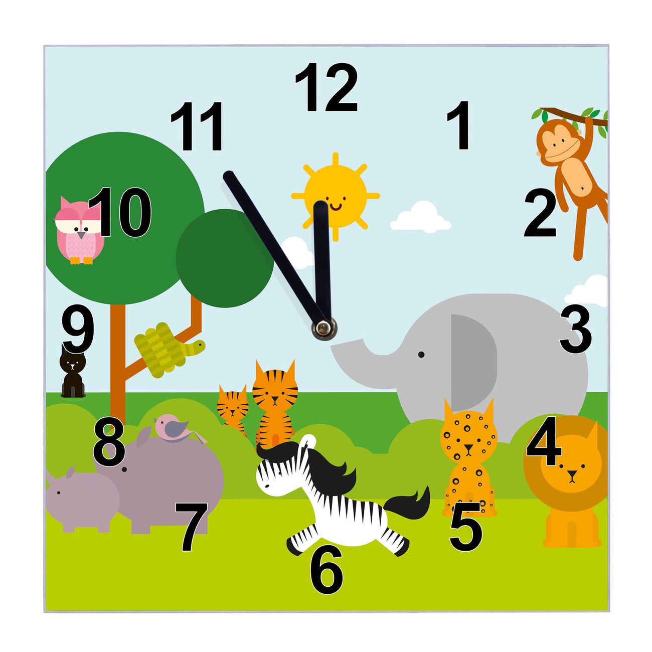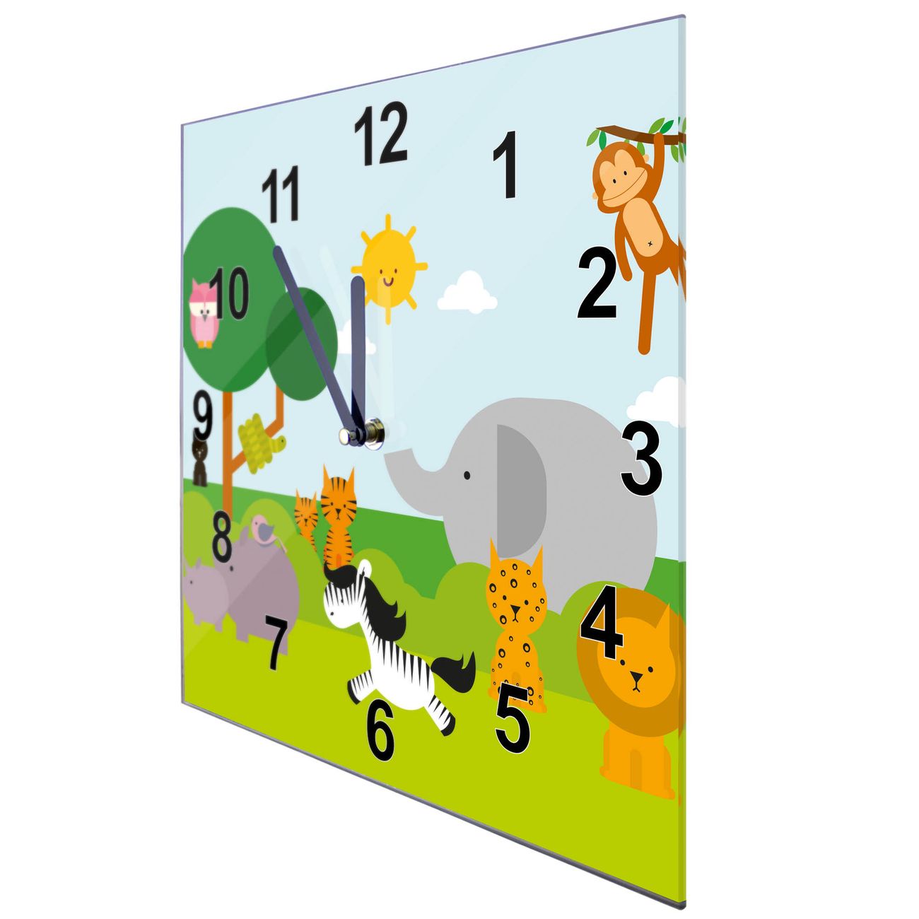 Glasuhr quadratisch Motiv Wilde Tiere