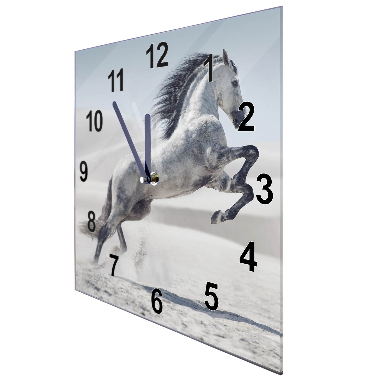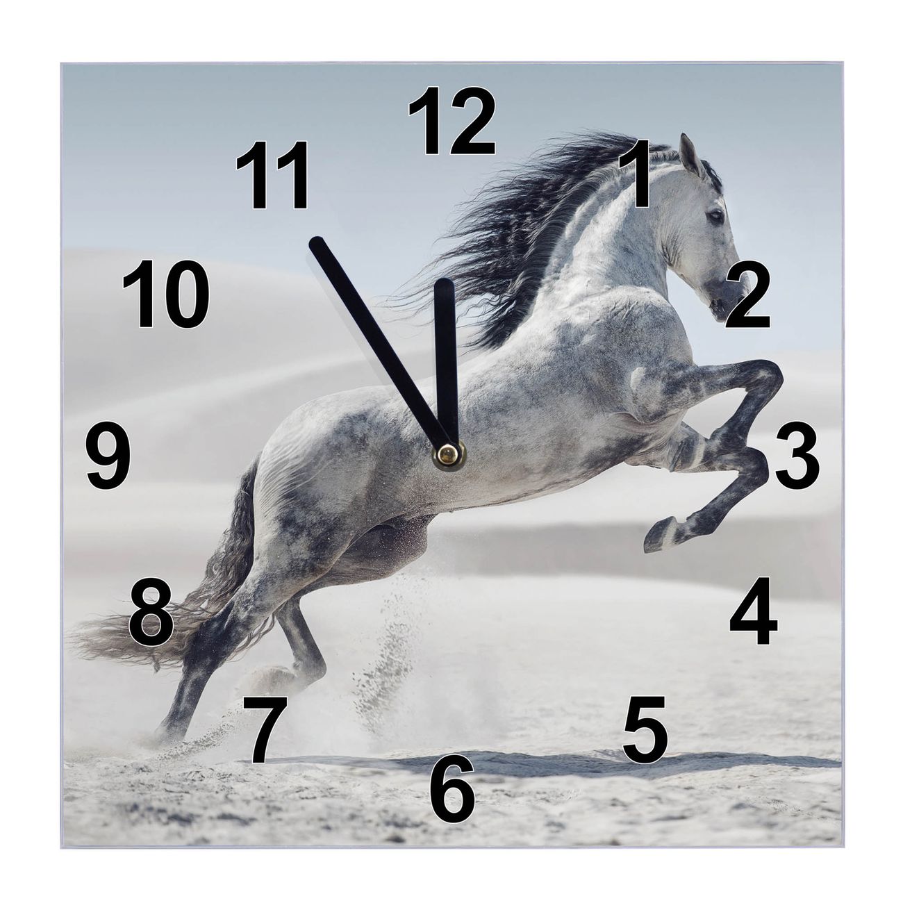 FUNKTION: Mit der banjado Wanduhr aus Glas mit dem Motiv Wildes Pferd behalten Sie die Zeit immer im Blick, stilsicher und zuverlässig erkennen Sie auf einen Blick was die Stunde geschlagen hat. DESIGN: Die schlichte Form der Uhr sowie das individuelle Motiv passen sich hervorragend jedem Wohnraumkonzept an, egal ob klassisch, nostalgisch oder modern. DETAILS: Die Glasuhr ist quadratisch, 30 x 30cm groß und verfügt über ein geräuscharmes Uhrwerk mit schwarzen Zeigern. Das Motiv Wildes Pferd befindet sich effektvoll hinter Glas. NUTZEN: Die banjado Glas Wanduhr verbindet Design und Funktion. Perfekt für Küche, Büro, Wohnzimmer oder Kinderzimmer, haben Sie die Zeit im Blick und eine schöne Wanddekoration. BANJADO: Wir fertigen alle Wanduhren auf Bestellung von Hand, erfüllen dabei auch gern Sonderwünsche. Wir wünschen viel Freude bei der Auswahl eines schönen Motivs. Herzlichst, banjado aus Sachsen