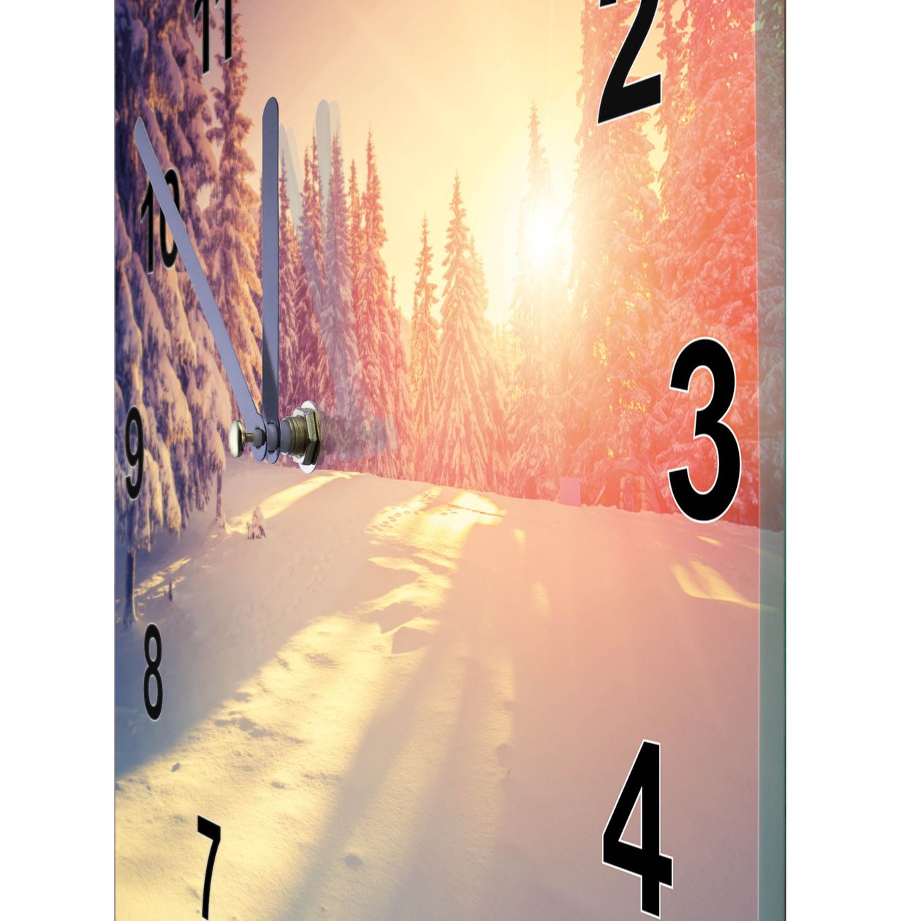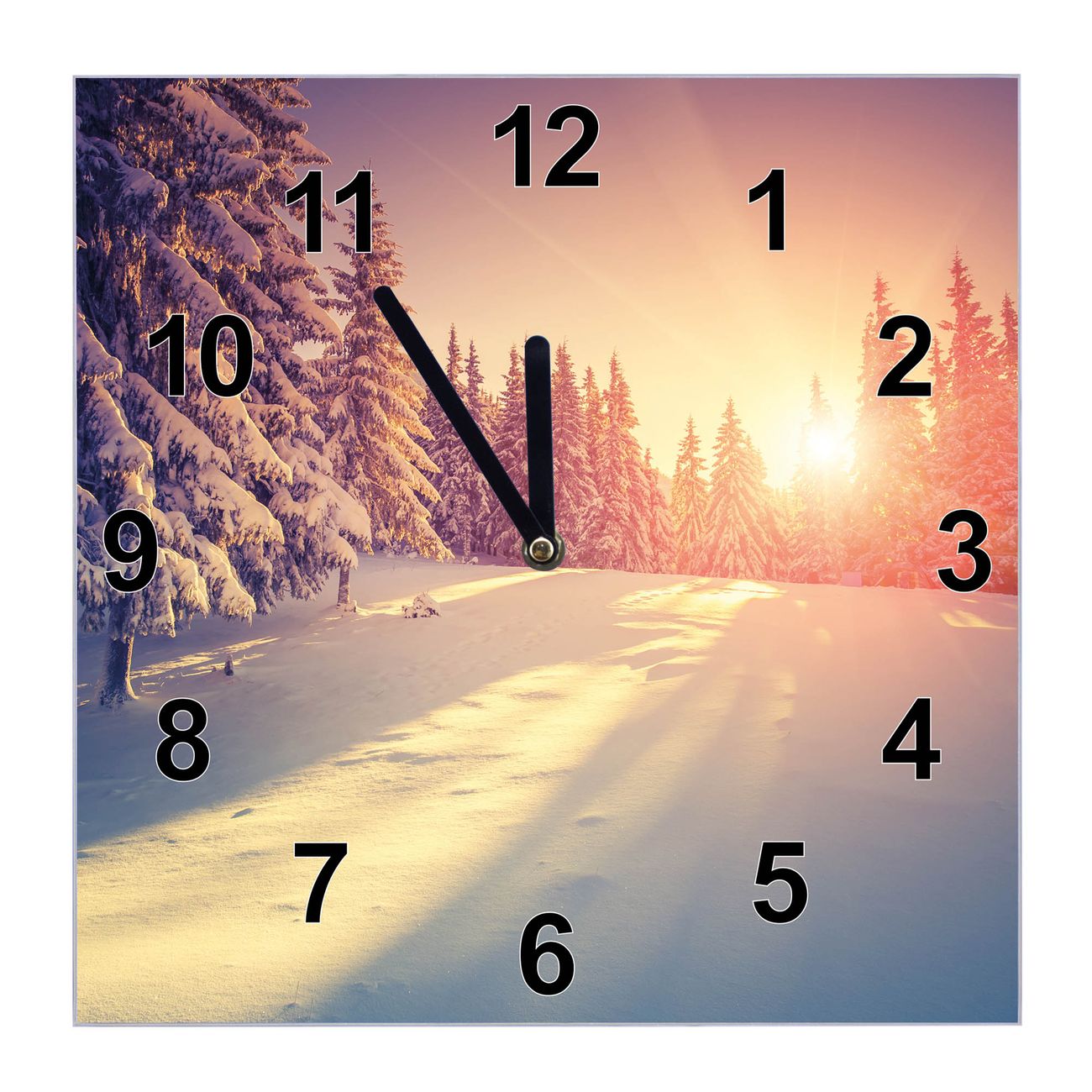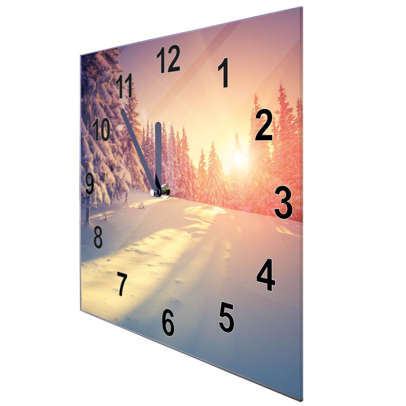 Glasuhr quadratisch Motiv Winterabend