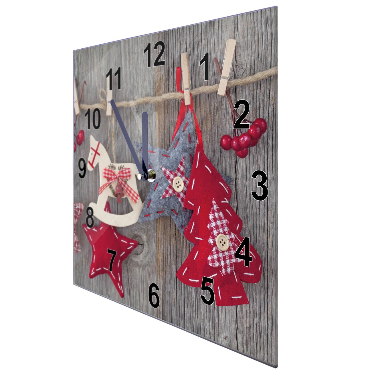 FUNKTION: Mit der banjado Wanduhr aus Glas mit dem Motiv Winterdekoration behalten Sie die Zeit immer im Blick, stilsicher und zuverlässig erkennen Sie auf einen Blick was die Stunde geschlagen hat. DESIGN: Die schlichte Form der Uhr sowie das individuelle Motiv passen sich hervorragend jedem Wohnraumkonzept an, egal ob klassisch, nostalgisch oder modern. DETAILS: Die Glasuhr ist quadratisch, 30 x 30cm groß und verfügt über ein geräuscharmes Uhrwerk mit schwarzen Zeigern. Das Motiv Winterdekoration befindet sich effektvoll hinter Glas. NUTZEN: Die banjado Glas Wanduhr verbindet Design und Funktion. Perfekt für Küche, Büro, Wohnzimmer oder Kinderzimmer, haben Sie die Zeit im Blick und eine schöne Wanddekoration. BANJADO: Wir fertigen alle Wanduhren auf Bestellung von Hand, erfüllen dabei auch gern Sonderwünsche. Wir wünschen viel Freude bei der Auswahl eines schönen Motivs. Herzlichst, banjado aus Sachsen