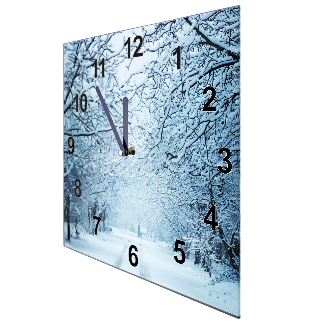 Glasuhr quadratisch Motiv Winterspaziergang