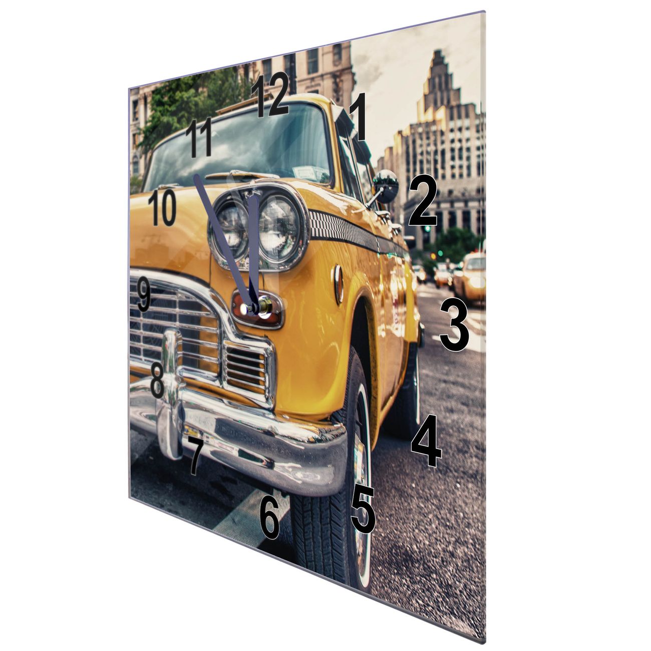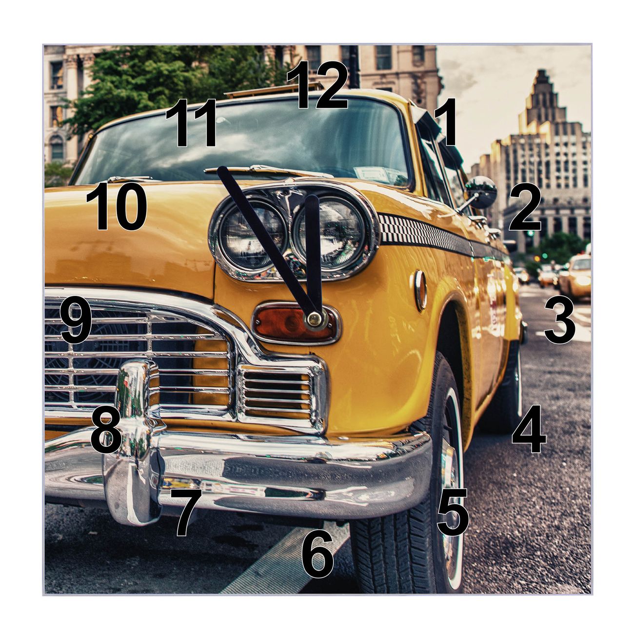 FUNKTION: Mit der banjado Wanduhr aus Glas mit dem Motiv Yellow Cab behalten Sie die Zeit immer im Blick, stilsicher und zuverlässig erkennen Sie auf einen Blick was die Stunde geschlagen hat. DESIGN: Die schlichte Form der Uhr sowie das individuelle Motiv passen sich hervorragend jedem Wohnraumkonzept an, egal ob klassisch, nostalgisch oder modern. DETAILS: Die Glasuhr ist quadratisch, 30 x 30cm groß und verfügt über ein geräuscharmes Uhrwerk mit schwarzen Zeigern. Das Motiv Yellow Cab befindet sich effektvoll hinter Glas. NUTZEN: Die banjado Glas Wanduhr verbindet Design und Funktion. Perfekt für Küche, Büro, Wohnzimmer oder Kinderzimmer, haben Sie die Zeit im Blick und eine schöne Wanddekoration. BANJADO: Wir fertigen alle Wanduhren auf Bestellung von Hand, erfüllen dabei auch gern Sonderwünsche. Wir wünschen viel Freude bei der Auswahl eines schönen Motivs. Herzlichst, banjado aus Sachsen
