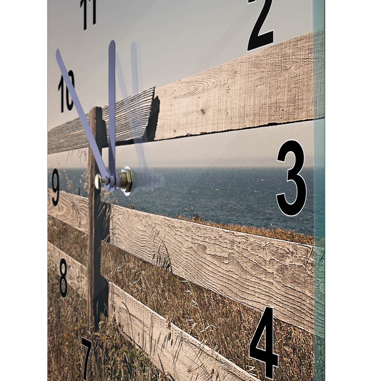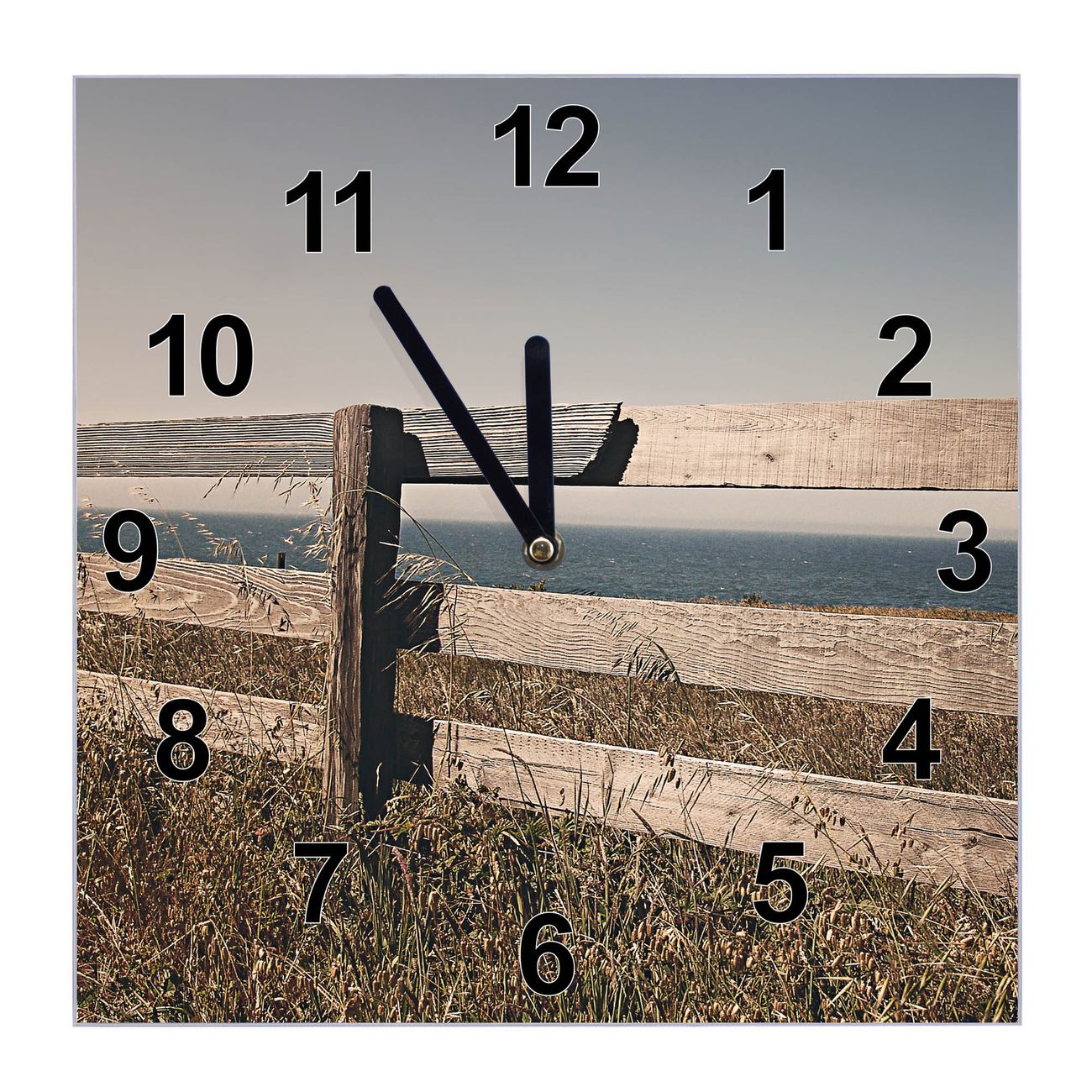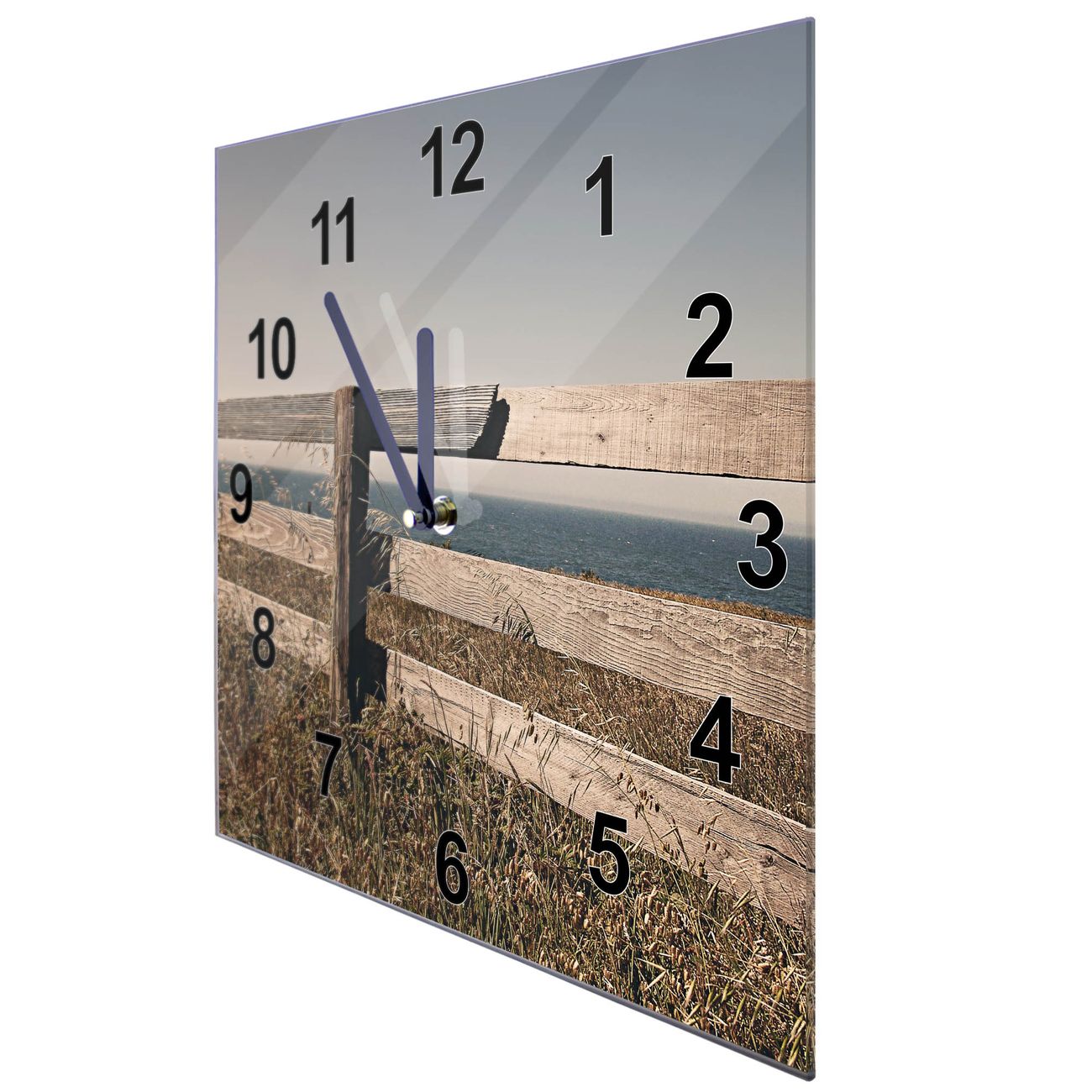 Glasuhr quadratisch Motiv Zaun am Meer