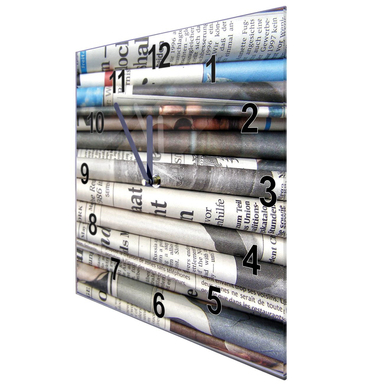FUNKTION: Mit der banjado Wanduhr aus Glas mit dem Motiv Zeitungen behalten Sie die Zeit immer im Blick, stilsicher und zuverlässig erkennen Sie auf einen Blick was die Stunde geschlagen hat. DESIGN: Die schlichte Form der Uhr sowie das individuelle Motiv passen sich hervorragend jedem Wohnraumkonzept an, egal ob klassisch, nostalgisch oder modern. DETAILS: Die Glasuhr ist quadratisch, 30 x 30cm groß und verfügt über ein geräuscharmes Uhrwerk mit schwarzen Zeigern. Das Motiv Zeitungen befindet sich effektvoll hinter Glas. NUTZEN: Die banjado Glas Wanduhr verbindet Design und Funktion. Perfekt für Küche, Büro, Wohnzimmer oder Kinderzimmer, haben Sie die Zeit im Blick und eine schöne Wanddekoration. BANJADO: Wir fertigen alle Wanduhren auf Bestellung von Hand, erfüllen dabei auch gern Sonderwünsche. Wir wünschen viel Freude bei der Auswahl eines schönen Motivs. Herzlichst, banjado aus Sachsen