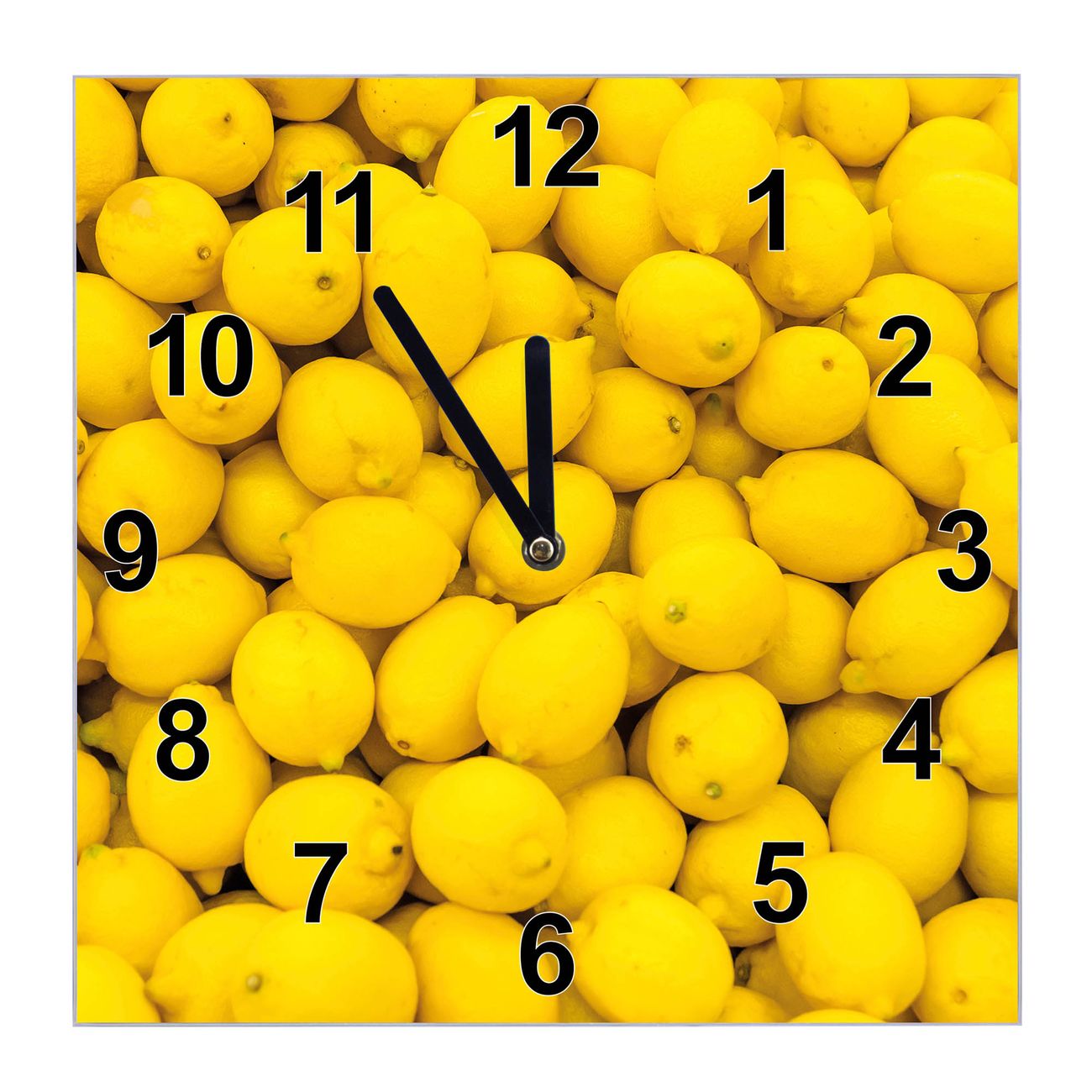 FUNKTION: Mit der banjado Wanduhr aus Glas mit dem Motiv Zitronen behalten Sie die Zeit immer im Blick, stilsicher und zuverlässig erkennen Sie auf einen Blick was die Stunde geschlagen hat. DESIGN: Die schlichte Form der Uhr sowie das individuelle Motiv passen sich hervorragend jedem Wohnraumkonzept an, egal ob klassisch, nostalgisch oder modern. DETAILS: Die Glasuhr ist quadratisch, 30 x 30cm groß und verfügt über ein geräuscharmes Uhrwerk mit schwarzen Zeigern. Das Motiv Zitronen befindet sich effektvoll hinter Glas. NUTZEN: Die banjado Glas Wanduhr verbindet Design und Funktion. Perfekt für Küche, Büro, Wohnzimmer oder Kinderzimmer, haben Sie die Zeit im Blick und eine schöne Wanddekoration. BANJADO: Wir fertigen alle Wanduhren auf Bestellung von Hand, erfüllen dabei auch gern Sonderwünsche. Wir wünschen viel Freude bei der Auswahl eines schönen Motivs. Herzlichst, banjado aus Sachsen