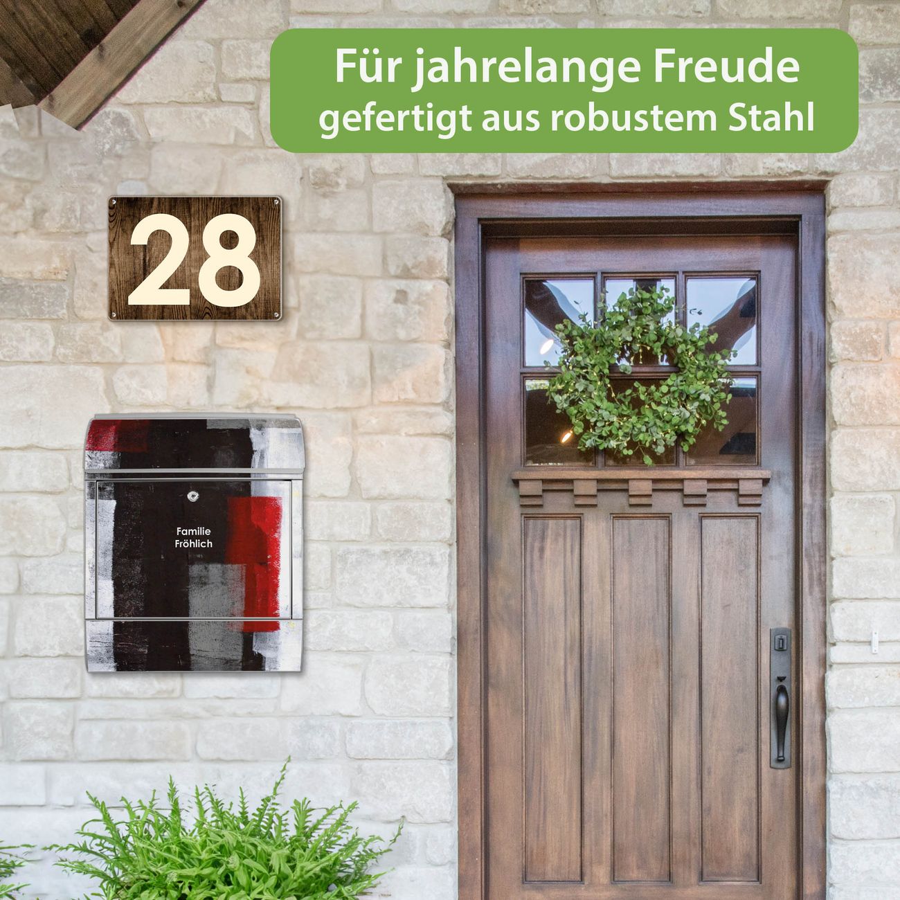Großer Stahl Briefkasten Motiv Abstrakt Rot