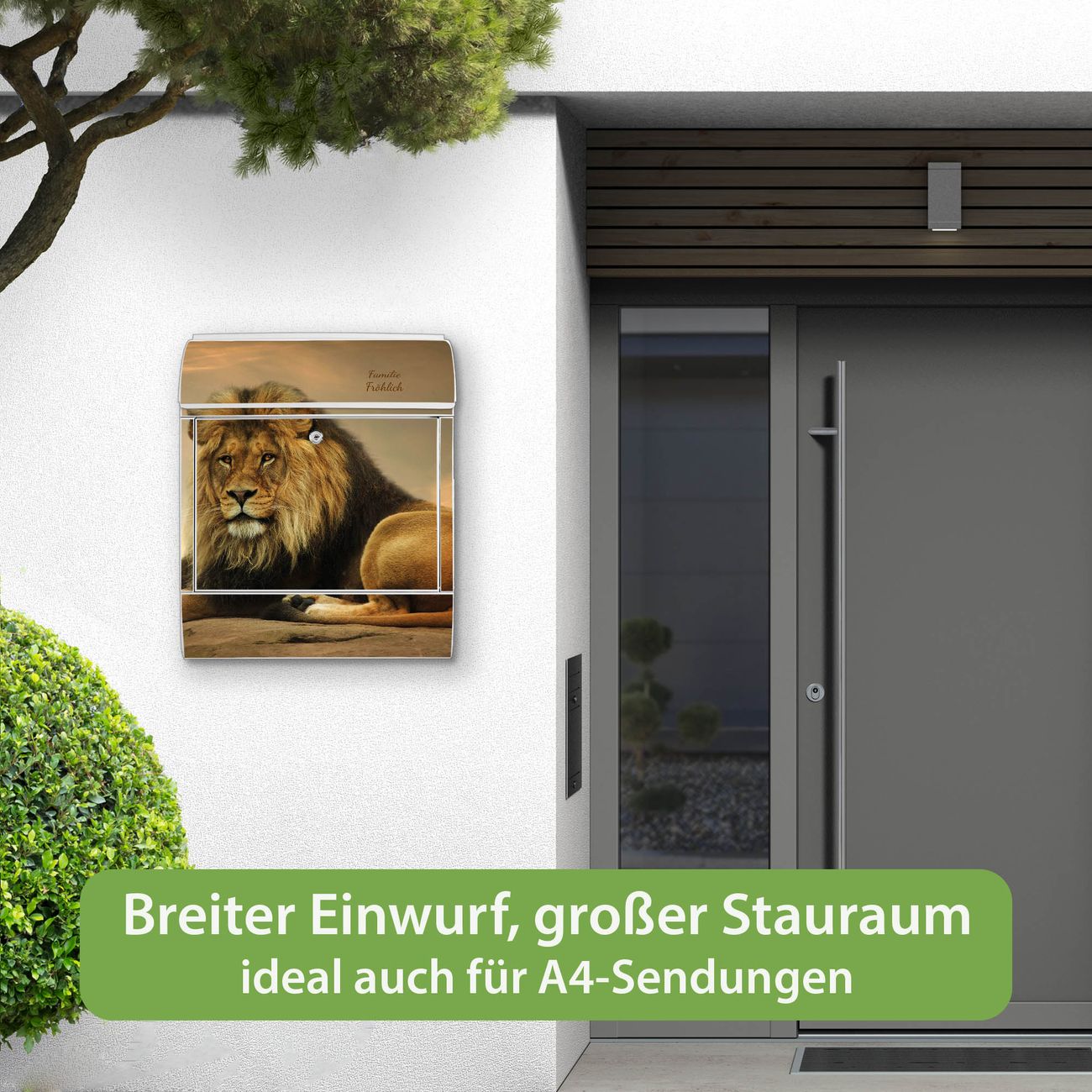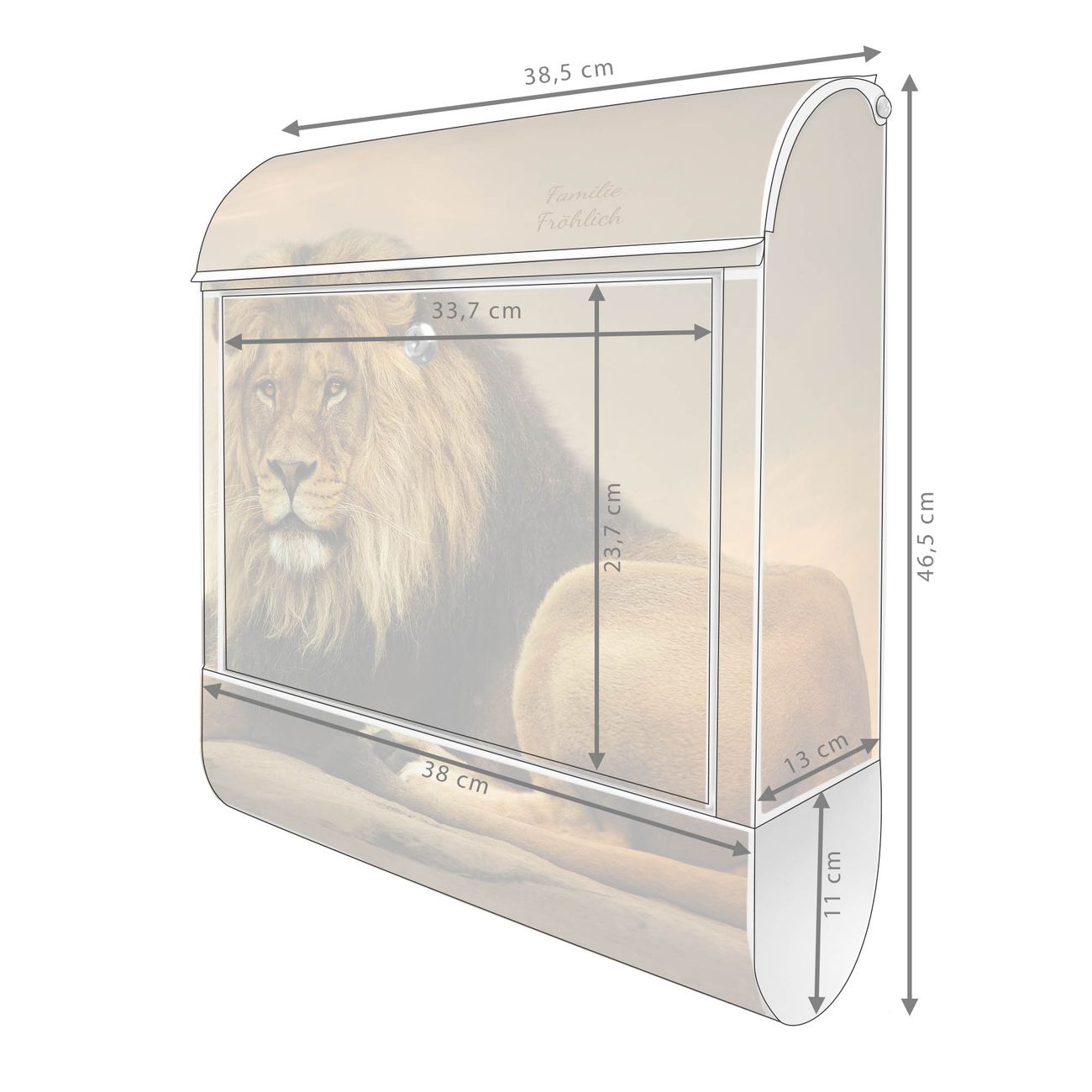 DESIGN: Der Postkasten mit Motiv Motiv Adrian hat ein sehr ansprechendes und ausgefallenes Design, damit entlocken Sie Ihren Nachbarn und dem Postboten ein Lächeln. Heben Sie Sich von der tristen grauen Masse ab, ohne auf Funktionalität zu verzichten. DETAILS: Der Postkasten besteht aus pulverbeschichtetem Stahl. Er ist 38x46x12,5cm groß. Das Motiv besteht aus einer wetter- und UV-resistenten Folie, die mit einem Schutzlaminat überzogen ist, sodass der Briefkasten zusätzlich vor Kratzern geschützt ist. Der Briefkasten wird mit Montagematerial, zusätzlich zwei Schlüssel sowie einer Bohrschablone geliefert. NUTZEN: Sie können diesen Briefkasten sowohl als Wandbriefkasten montieren oder einen passenden Ständer kaufen und als Standbriefkasten einbetonieren. Die Größe bietet genügend Platz für Sendungen aller Art, der Einwurf fasst auch größere A4 Sendungen. BANJADO: Ihr Briefkasten wird in Sachsen in einer kleinen Manufaktur von Hand veredelt. Die Motivfolie ist lösungsmittelfrei und schutzlaminiert für einen langen Halt. Wir legen großen Wert auf die Verbindung von Funktionalität und Design. Sie erhalten Handarbeit aus Sachsen.