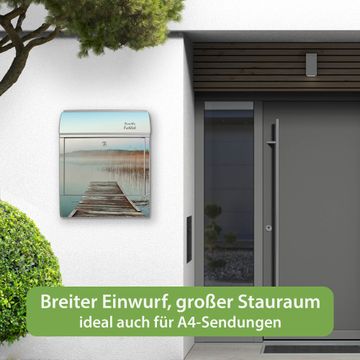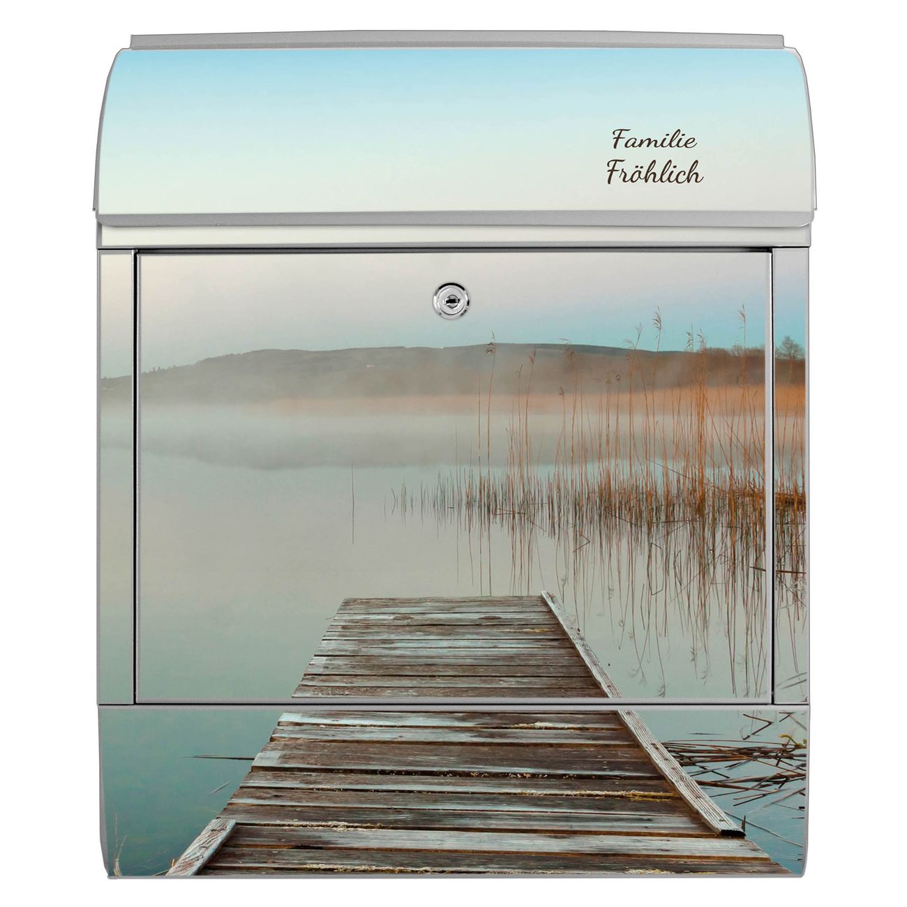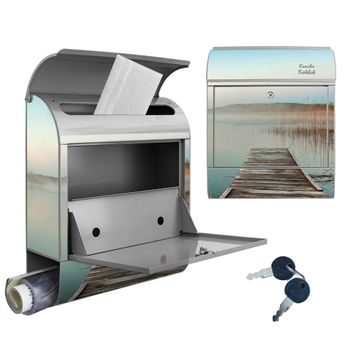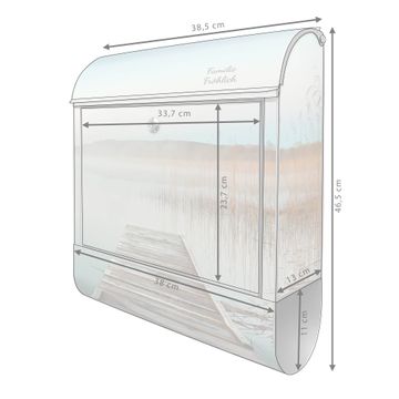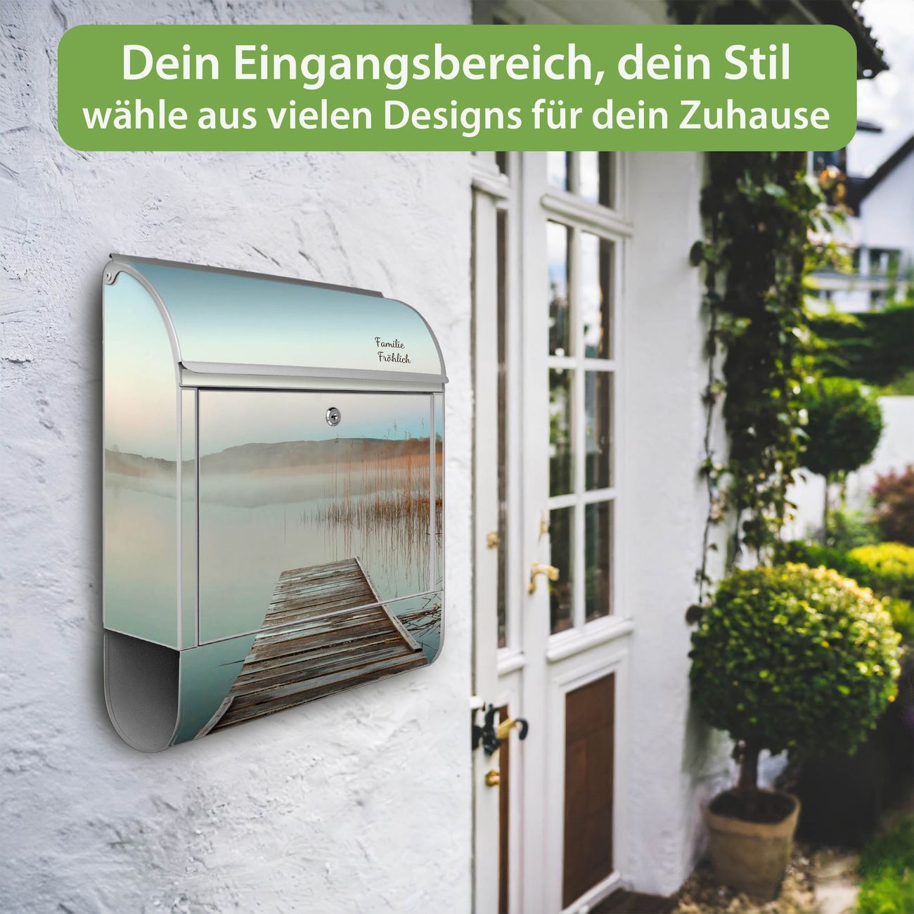 DESIGN: Der Postkasten mit Motiv Motiv Alter Steg hat ein sehr ansprechendes und ausgefallenes Design, damit entlocken Sie Ihren Nachbarn und dem Postboten ein Lächeln. Heben Sie Sich von der tristen grauen Masse ab, ohne auf Funktionalität zu verzichten. DETAILS: Der Postkasten besteht aus pulverbeschichtetem Stahl. Er ist 38x46x12,5cm groß. Das Motiv besteht aus einer wetter- und UV-resistenten Folie, die mit einem Schutzlaminat überzogen ist, sodass der Briefkasten zusätzlich vor Kratzern geschützt ist. Der Briefkasten wird mit Montagematerial, zusätzlich zwei Schlüssel sowie einer Bohrschablone geliefert. NUTZEN: Sie können diesen Briefkasten sowohl als Wandbriefkasten montieren oder einen passenden Ständer kaufen und als Standbriefkasten einbetonieren. Die Größe bietet genügend Platz für Sendungen aller Art, der Einwurf fasst auch größere A4 Sendungen. BANJADO: Ihr Briefkasten wird in Sachsen in einer kleinen Manufaktur von Hand veredelt. Die Motivfolie ist lösungsmittelfrei und schutzlaminiert für einen langen Halt. Wir legen großen Wert auf die Verbindung von Funktionalität und Design. Sie erhalten Handarbeit aus Sachsen.