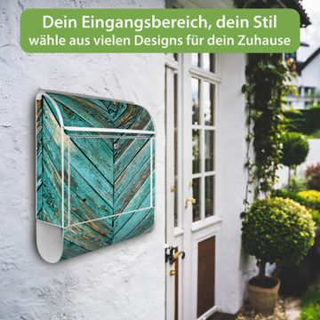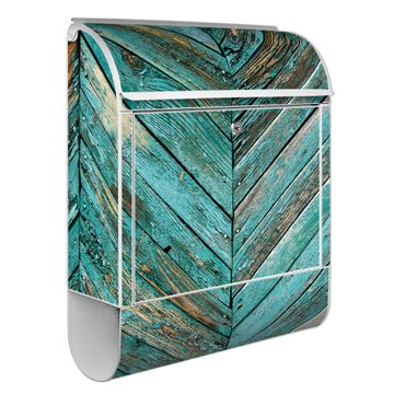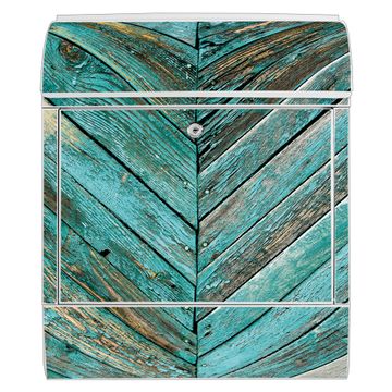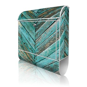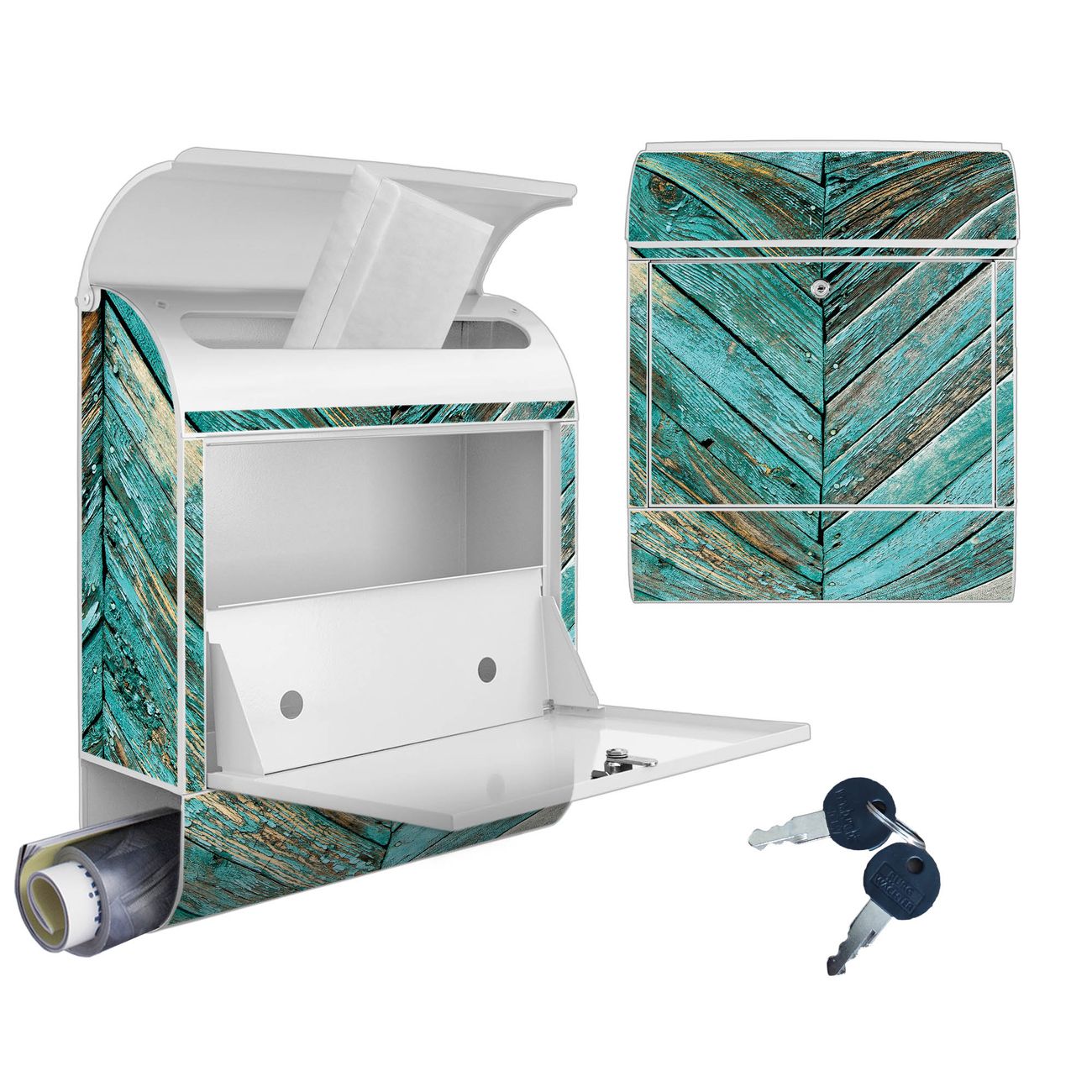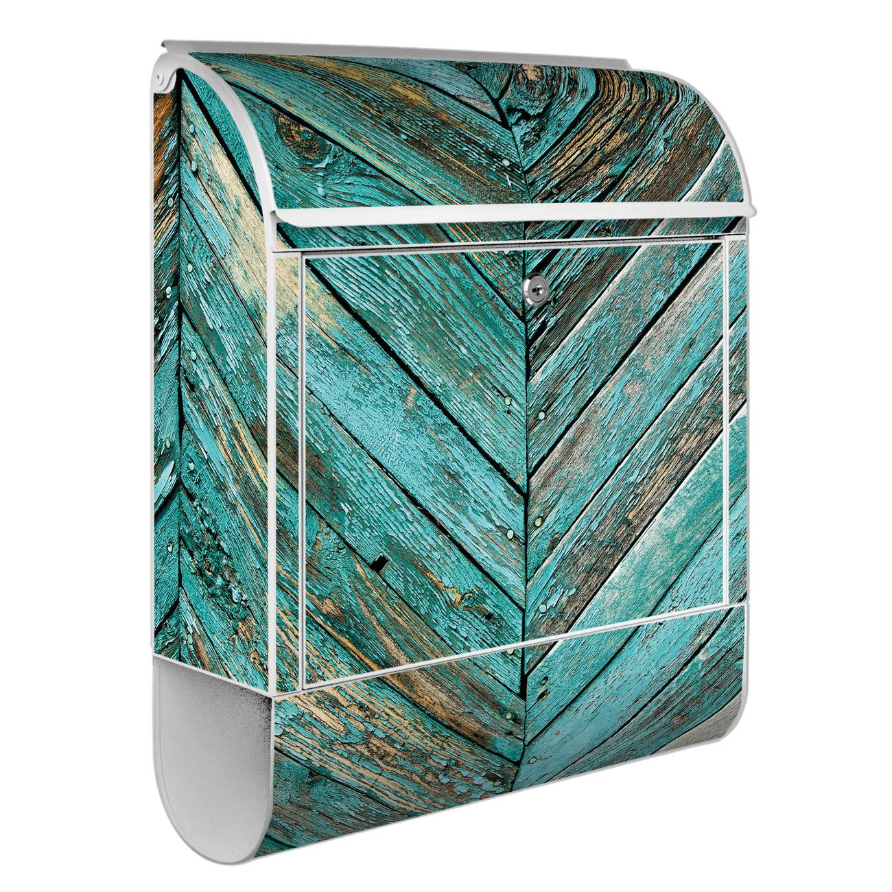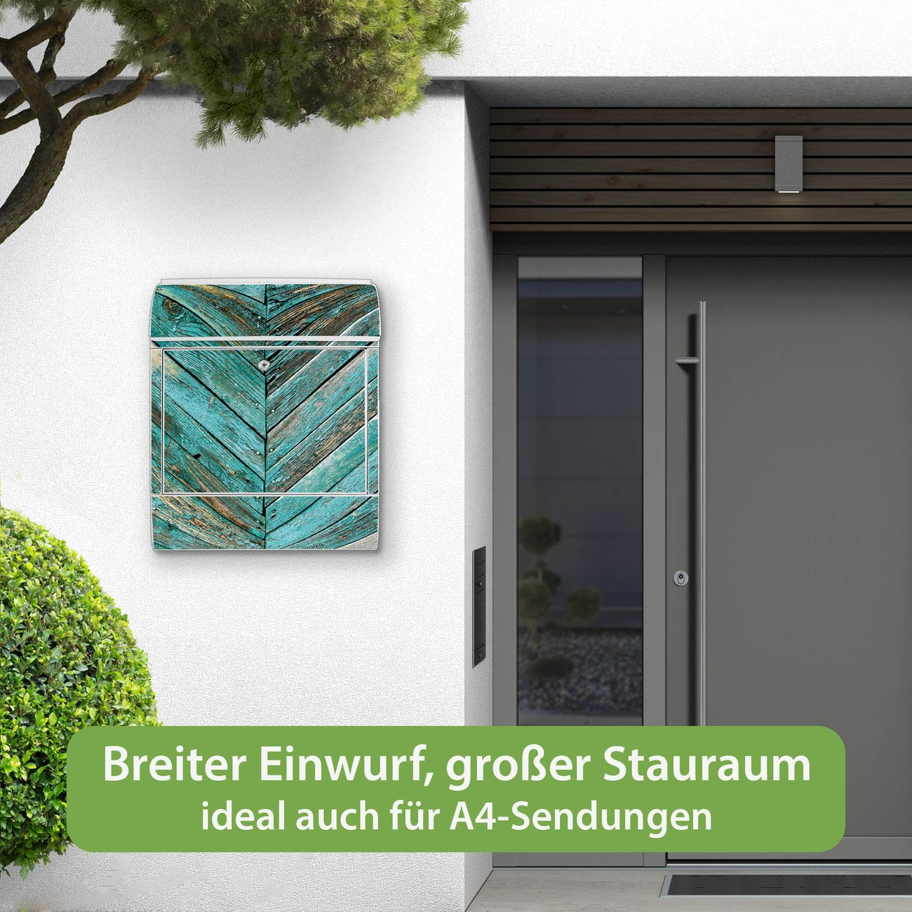 Großer Stahl Briefkasten Motiv Altes Holz Blau