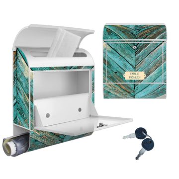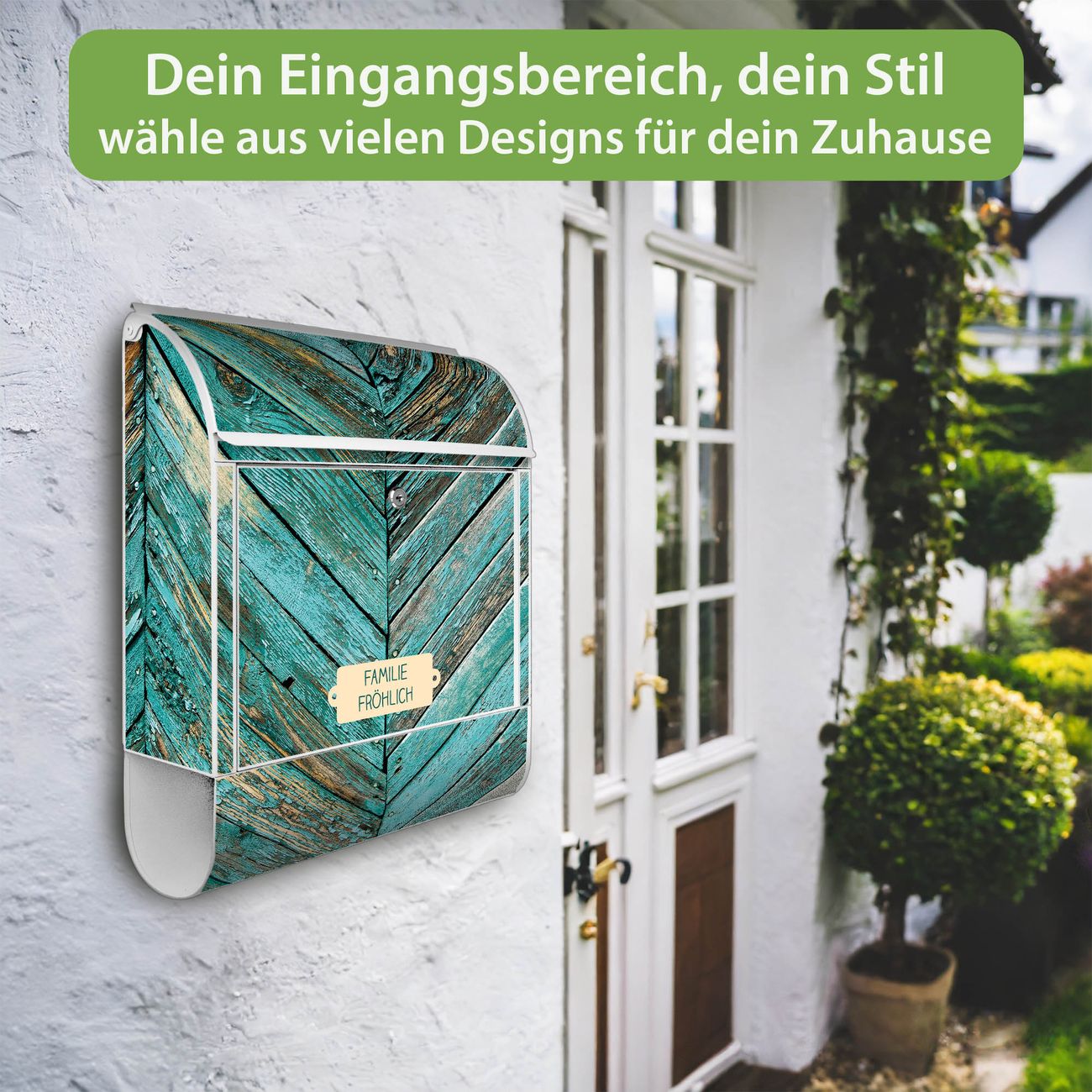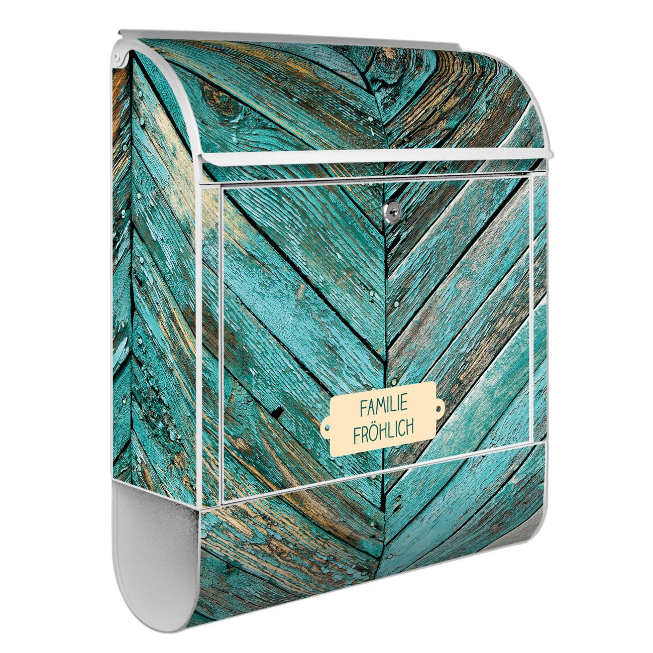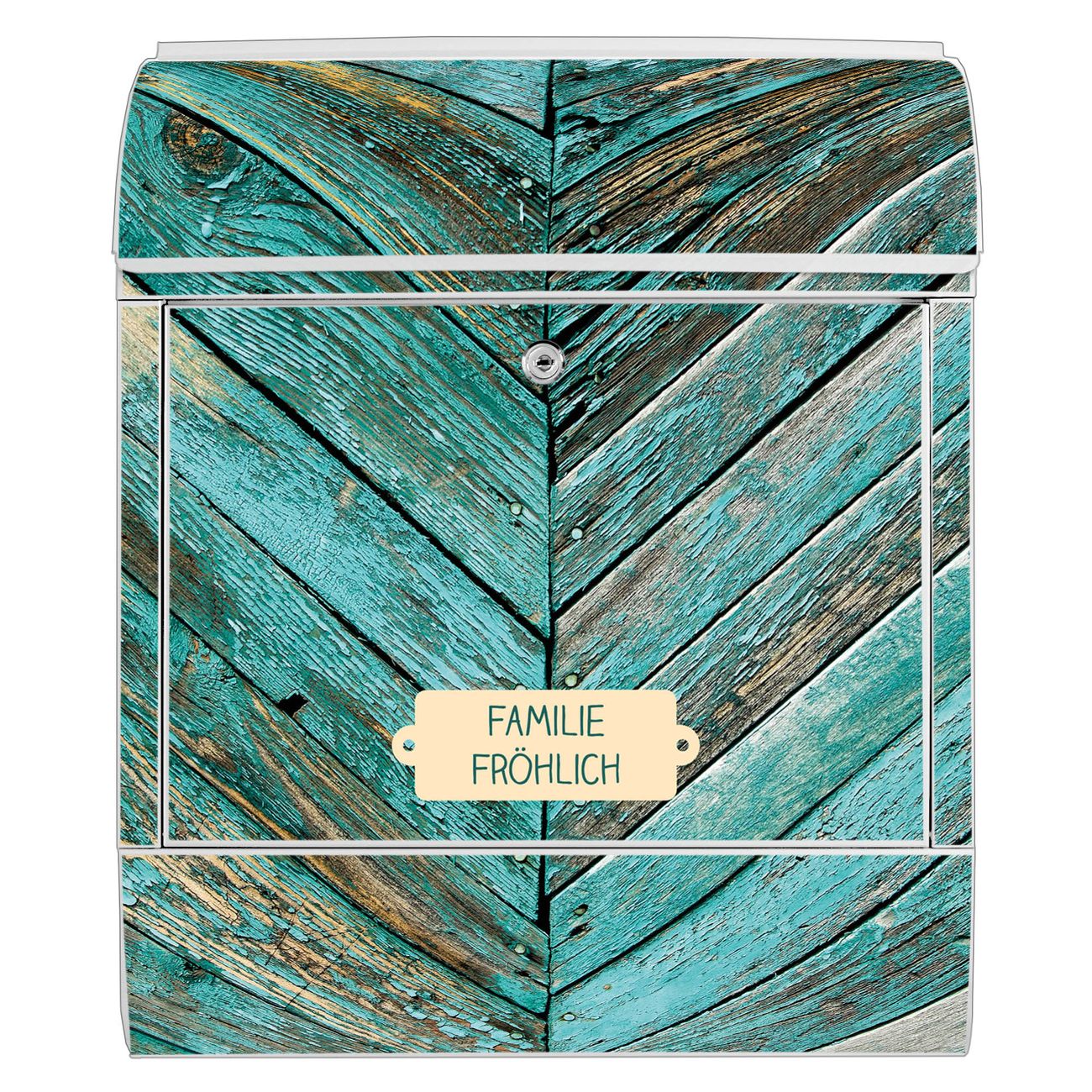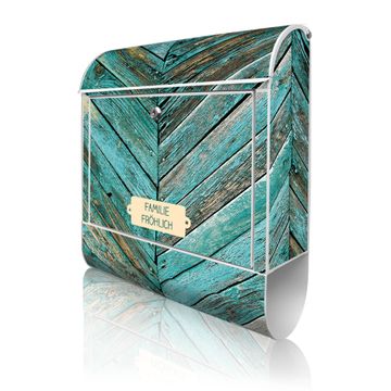 Großer Stahl Briefkasten Motiv Altes Holz Blau