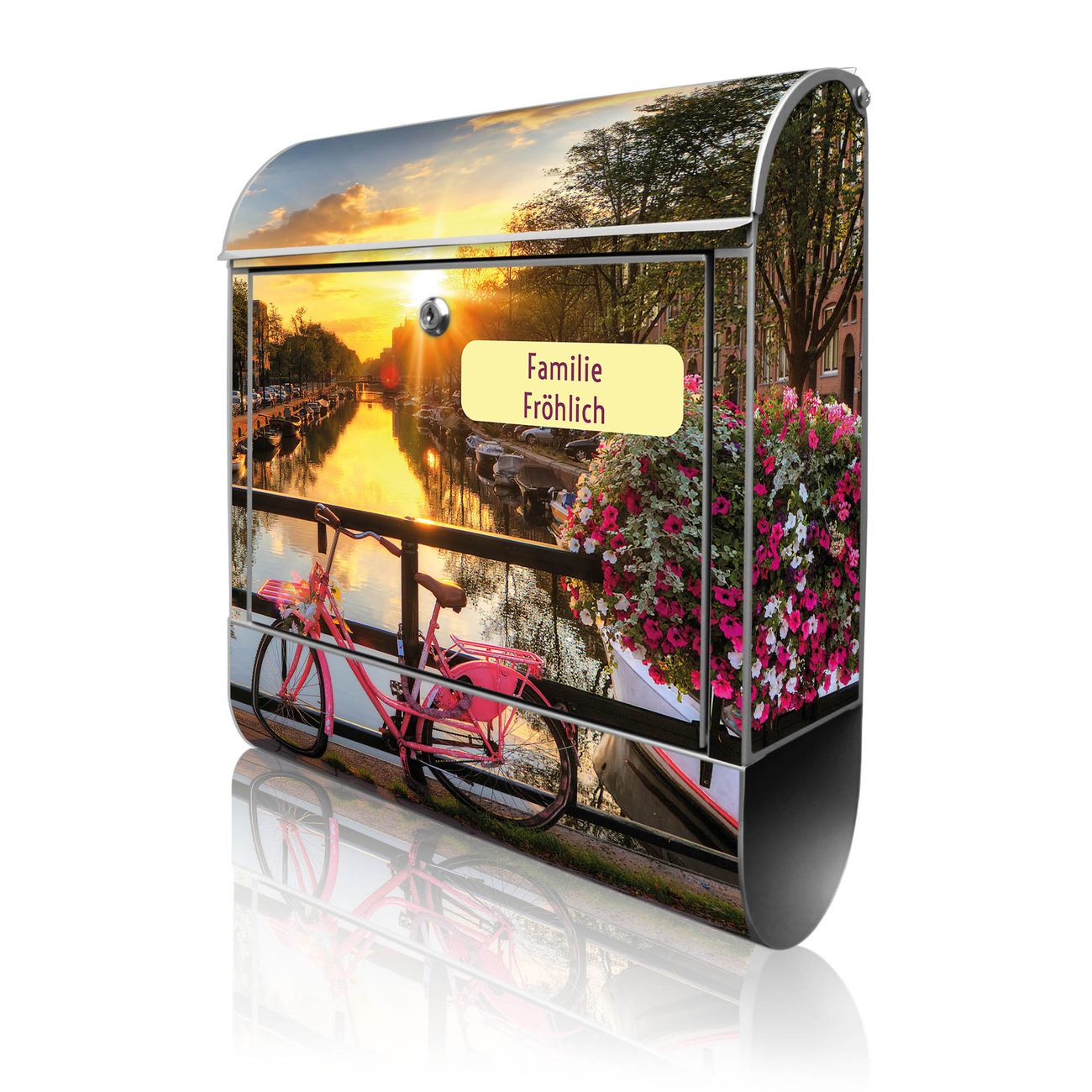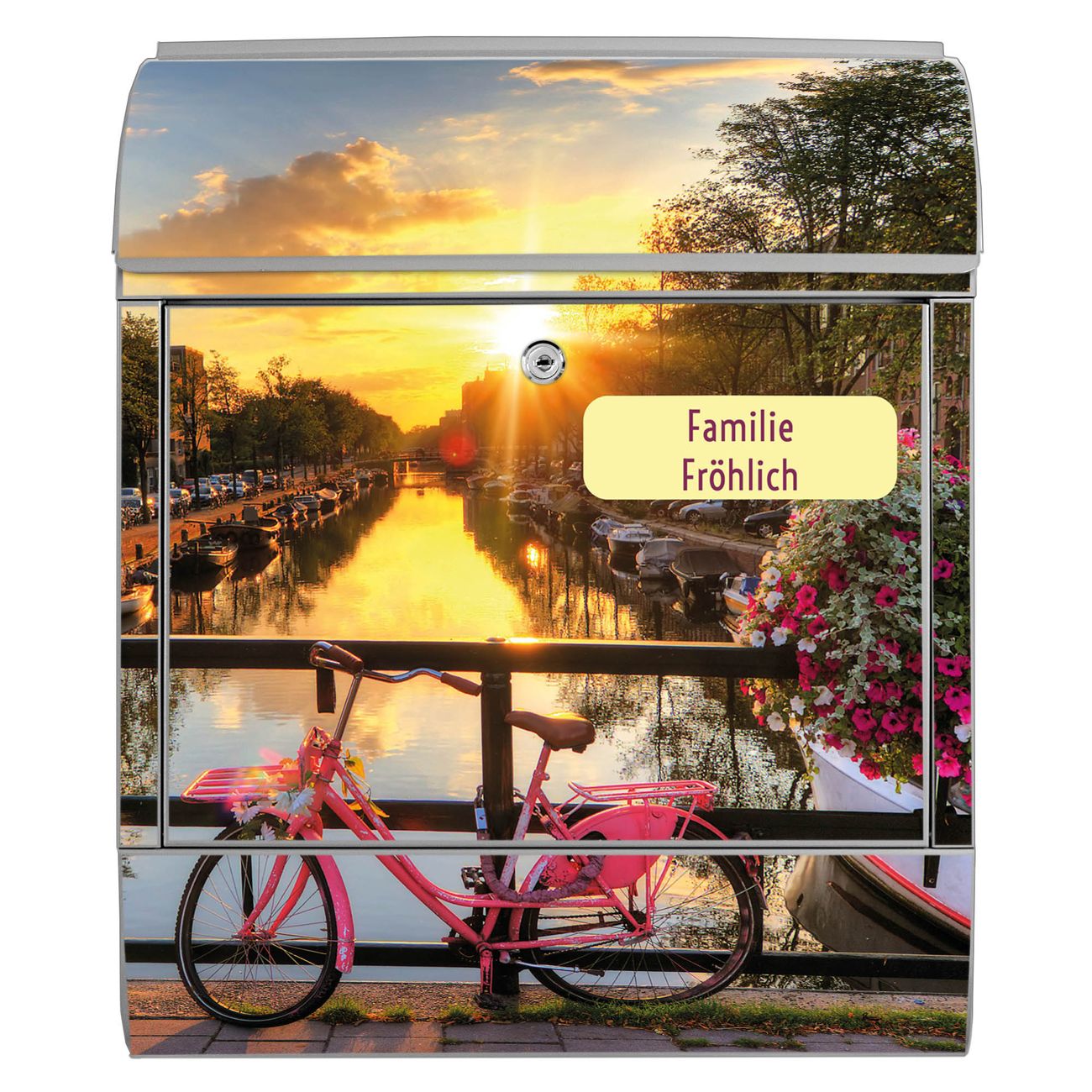 Großer Stahl Briefkasten Motiv Amsterdam Mit Rad