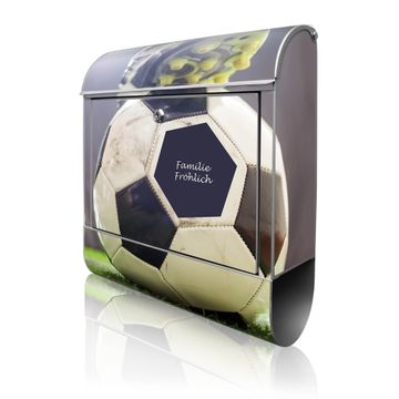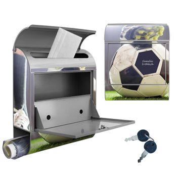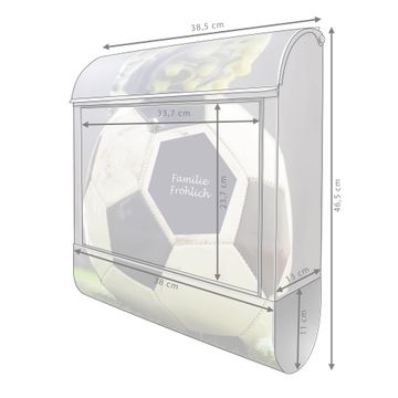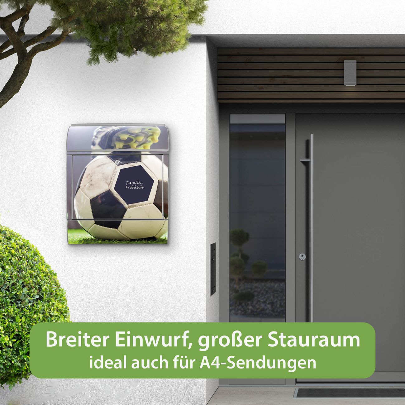 DESIGN: Der Postkasten mit Motiv Motiv Anpfiff hat ein sehr ansprechendes und ausgefallenes Design, damit entlocken Sie Ihren Nachbarn und dem Postboten ein Lächeln. Heben Sie Sich von der tristen grauen Masse ab, ohne auf Funktionalität zu verzichten. DETAILS: Der Postkasten besteht aus pulverbeschichtetem Stahl. Er ist 38x46x12,5cm groß. Das Motiv besteht aus einer wetter- und UV-resistenten Folie, die mit einem Schutzlaminat überzogen ist, sodass der Briefkasten zusätzlich vor Kratzern geschützt ist. Der Briefkasten wird mit Montagematerial, zusätzlich zwei Schlüssel sowie einer Bohrschablone geliefert. NUTZEN: Sie können diesen Briefkasten sowohl als Wandbriefkasten montieren oder einen passenden Ständer kaufen und als Standbriefkasten einbetonieren. Die Größe bietet genügend Platz für Sendungen aller Art, der Einwurf fasst auch größere A4 Sendungen. BANJADO: Ihr Briefkasten wird in Sachsen in einer kleinen Manufaktur von Hand veredelt. Die Motivfolie ist lösungsmittelfrei und schutzlaminiert für einen langen Halt. Wir legen großen Wert auf die Verbindung von Funktionalität und Design. Sie erhalten Handarbeit aus Sachsen.