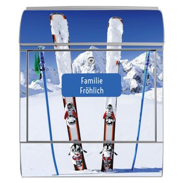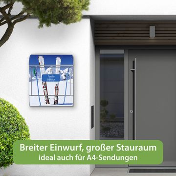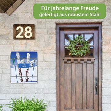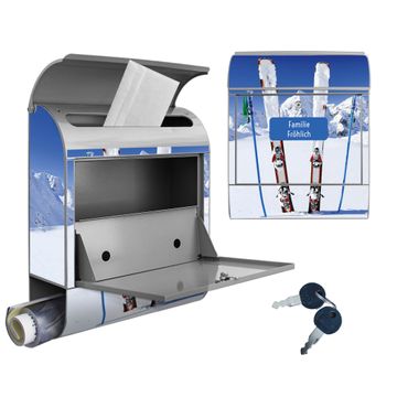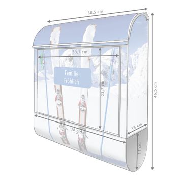 DESIGN: Der Postkasten mit Motiv Motiv Apres Ski hat ein sehr ansprechendes und ausgefallenes Design, damit entlocken Sie Ihren Nachbarn und dem Postboten ein Lächeln. Heben Sie Sich von der tristen grauen Masse ab, ohne auf Funktionalität zu verzichten. DETAILS: Der Postkasten besteht aus pulverbeschichtetem Stahl. Er ist 38x46x12,5cm groß. Das Motiv besteht aus einer wetter- und UV-resistenten Folie, die mit einem Schutzlaminat überzogen ist, sodass der Briefkasten zusätzlich vor Kratzern geschützt ist. Der Briefkasten wird mit Montagematerial, zusätzlich zwei Schlüssel sowie einer Bohrschablone geliefert. NUTZEN: Sie können diesen Briefkasten sowohl als Wandbriefkasten montieren oder einen passenden Ständer kaufen und als Standbriefkasten einbetonieren. Die Größe bietet genügend Platz für Sendungen aller Art, der Einwurf fasst auch größere A4 Sendungen. BANJADO: Ihr Briefkasten wird in Sachsen in einer kleinen Manufaktur von Hand veredelt. Die Motivfolie ist lösungsmittelfrei und schutzlaminiert für einen langen Halt. Wir legen großen Wert auf die Verbindung von Funktionalität und Design. Sie erhalten Handarbeit aus Sachsen.