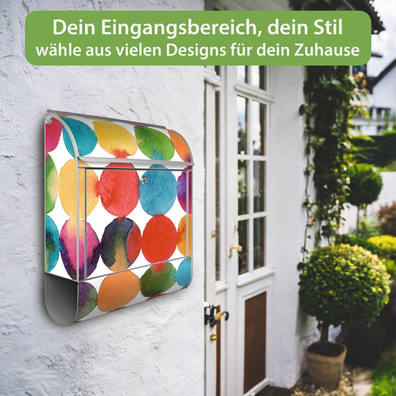 Großer Stahl Briefkasten Motiv Aquarell Kreise