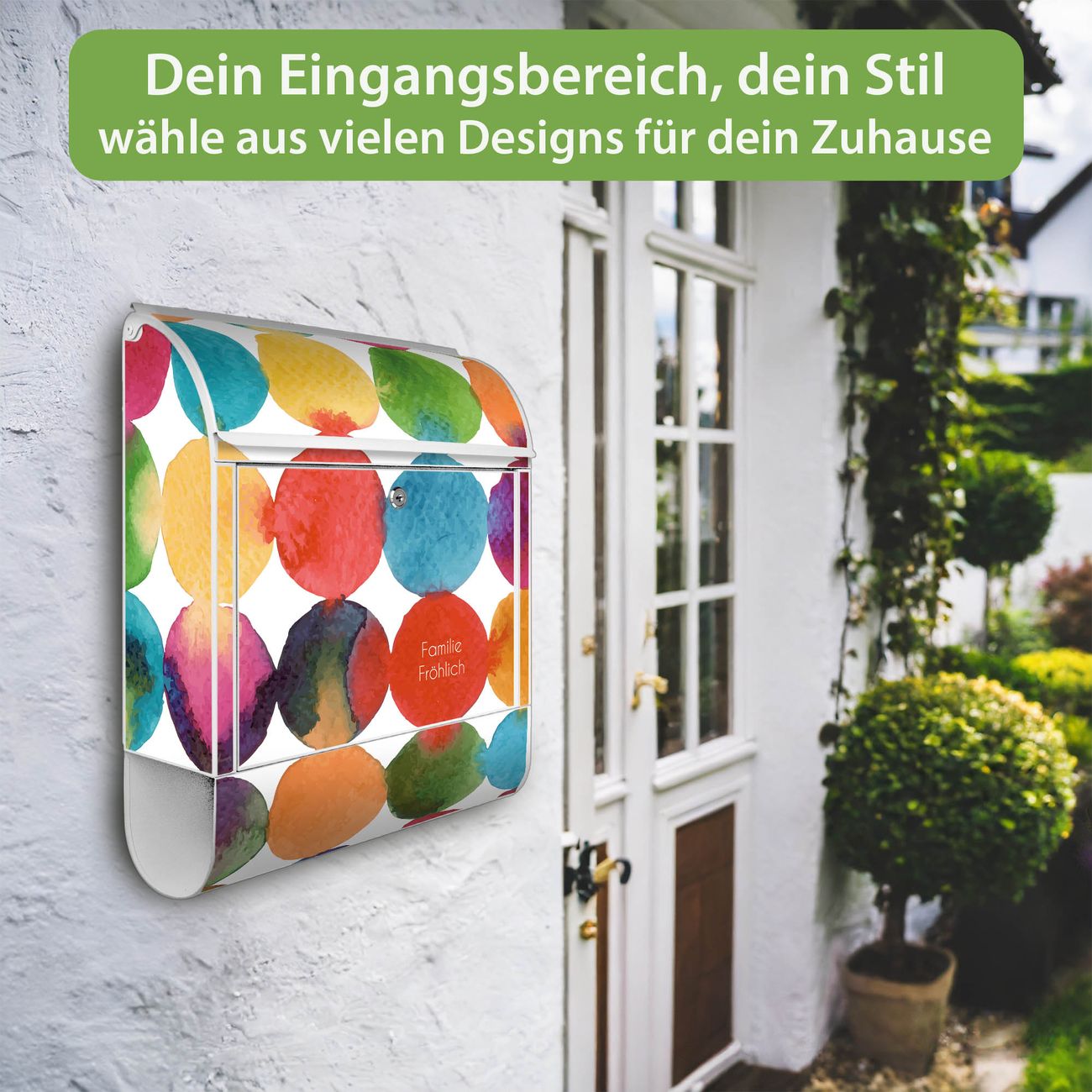 Großer Stahl Briefkasten Motiv Aquarell Kreise