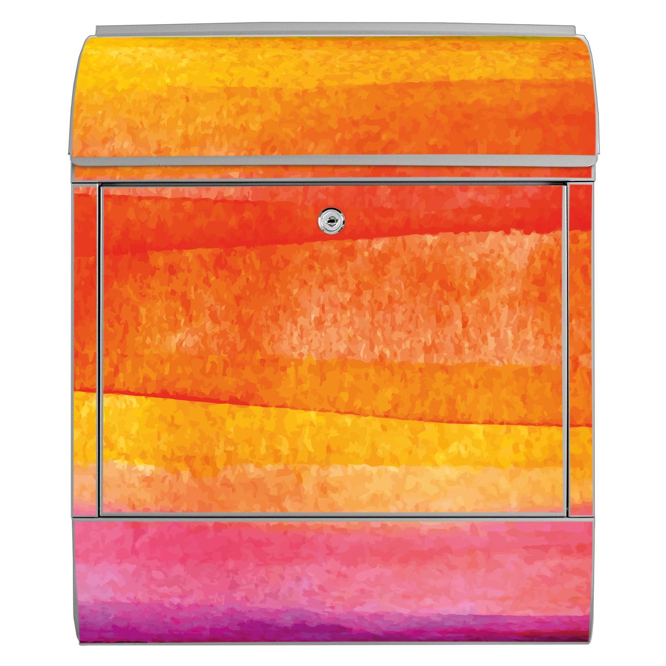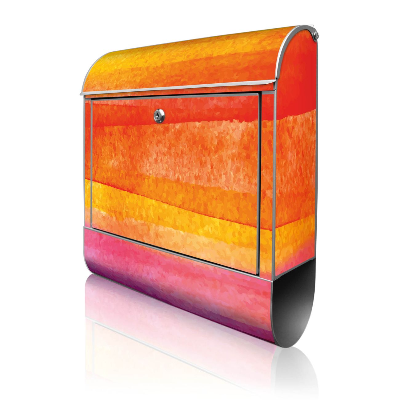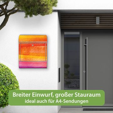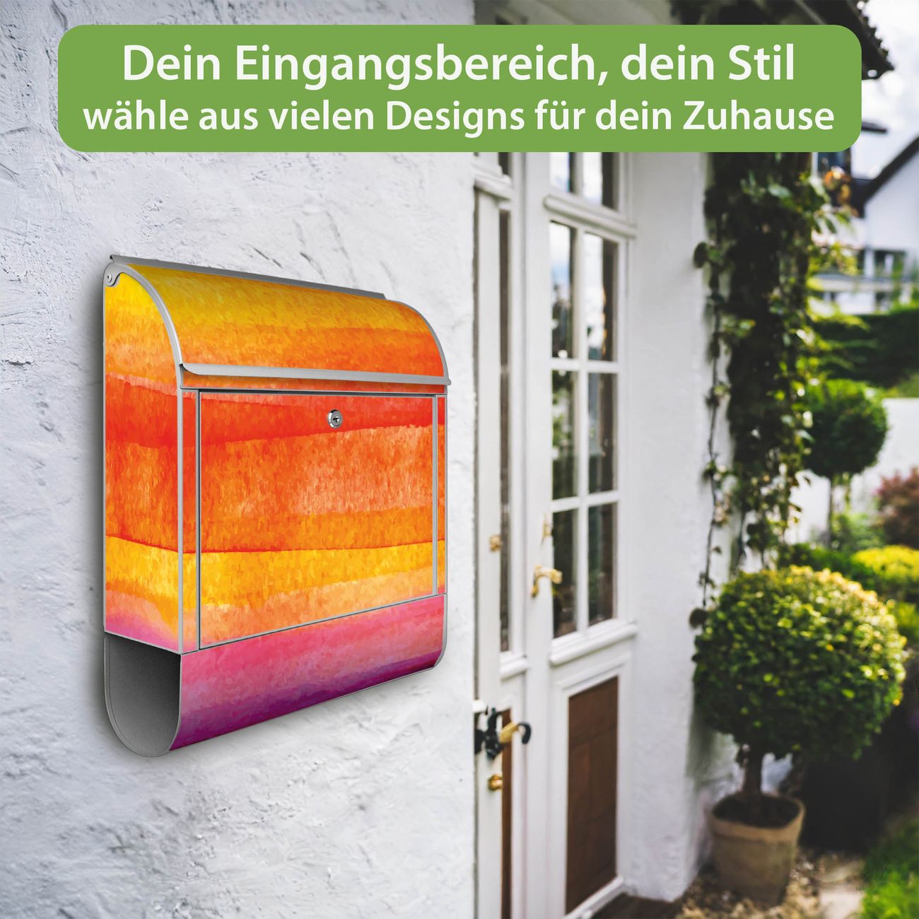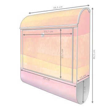 DESIGN: Der Postkasten mit Motiv Motiv Aquarell hat ein sehr ansprechendes und ausgefallenes Design, damit entlocken Sie Ihren Nachbarn und dem Postboten ein Lächeln. Heben Sie Sich von der tristen grauen Masse ab, ohne auf Funktionalität zu verzichten. DETAILS: Der Postkasten besteht aus pulverbeschichtetem Stahl. Er ist 38x46x12,5cm groß. Das Motiv besteht aus einer wetter- und UV-resistenten Folie, die mit einem Schutzlaminat überzogen ist, sodass der Briefkasten zusätzlich vor Kratzern geschützt ist. Der Briefkasten wird mit Montagematerial, zusätzlich zwei Schlüssel sowie einer Bohrschablone geliefert. NUTZEN: Sie können diesen Briefkasten sowohl als Wandbriefkasten montieren oder einen passenden Ständer kaufen und als Standbriefkasten einbetonieren. Die Größe bietet genügend Platz für Sendungen aller Art, der Einwurf fasst auch größere A4 Sendungen. BANJADO: Ihr Briefkasten wird in Sachsen in einer kleinen Manufaktur von Hand veredelt. Die Motivfolie ist lösungsmittelfrei und schutzlaminiert für einen langen Halt. Wir legen großen Wert auf die Verbindung von Funktionalität und Design. Sie erhalten Handarbeit aus Sachsen.
