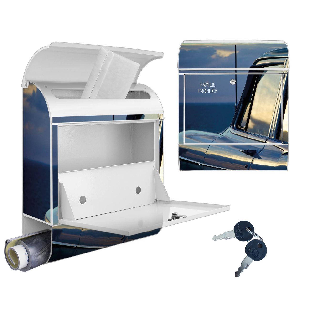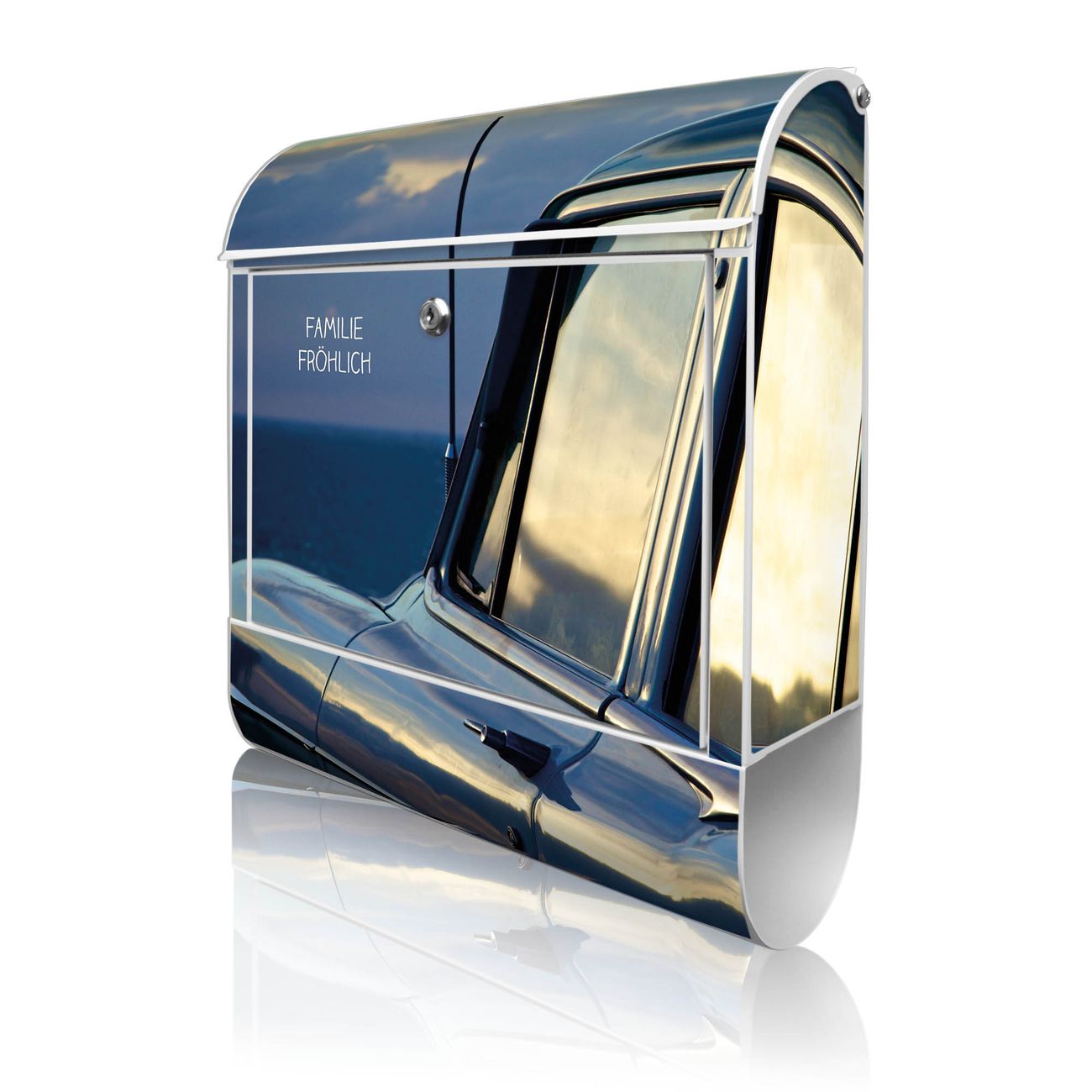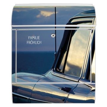 Großer Stahl Briefkasten Motiv Auto am Strand