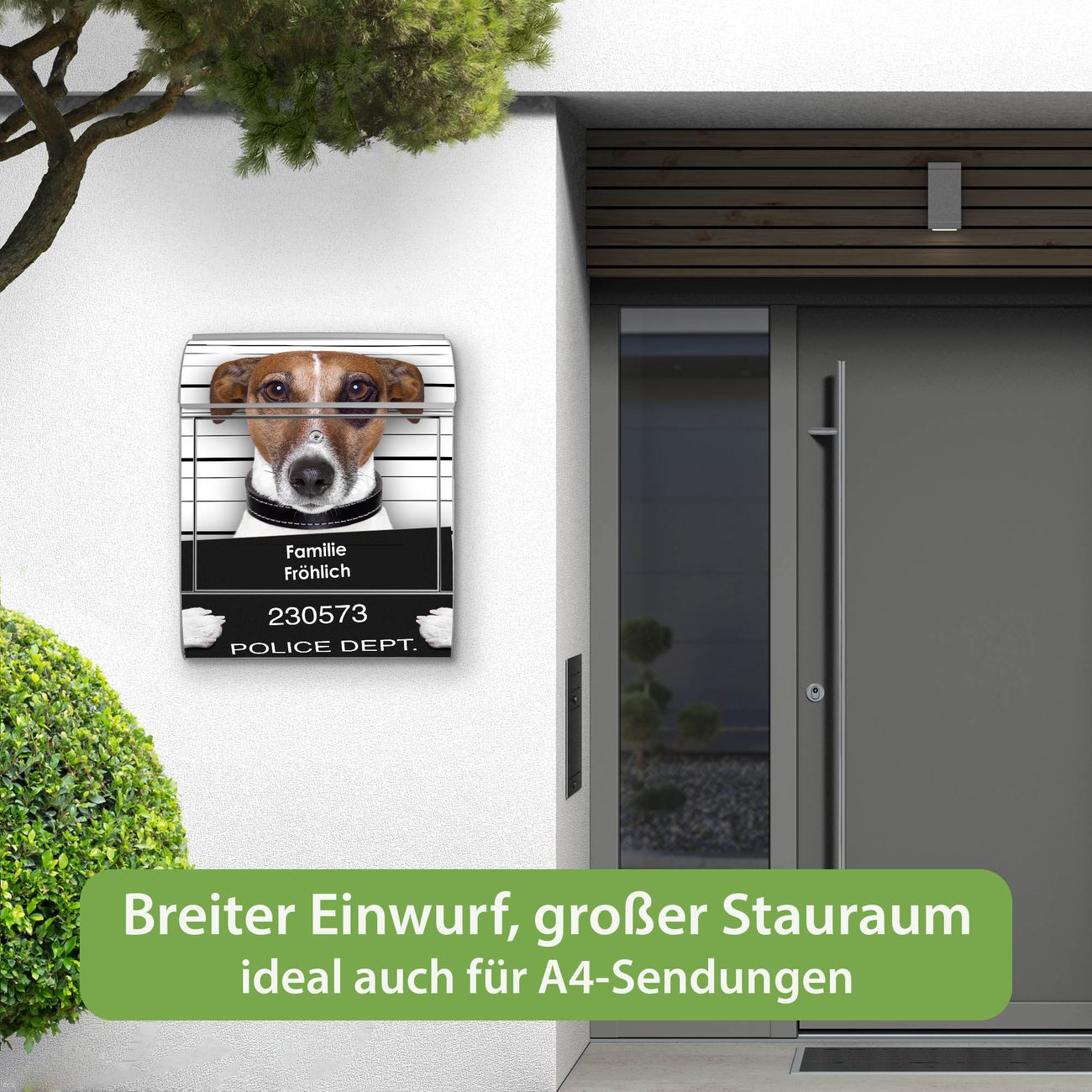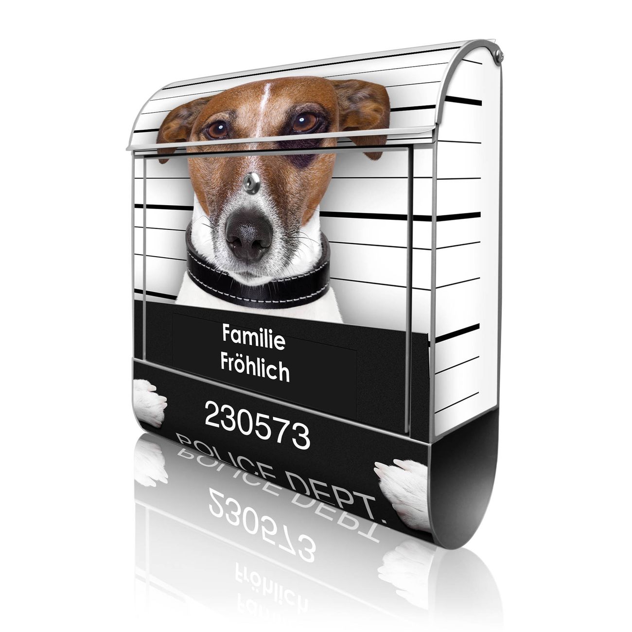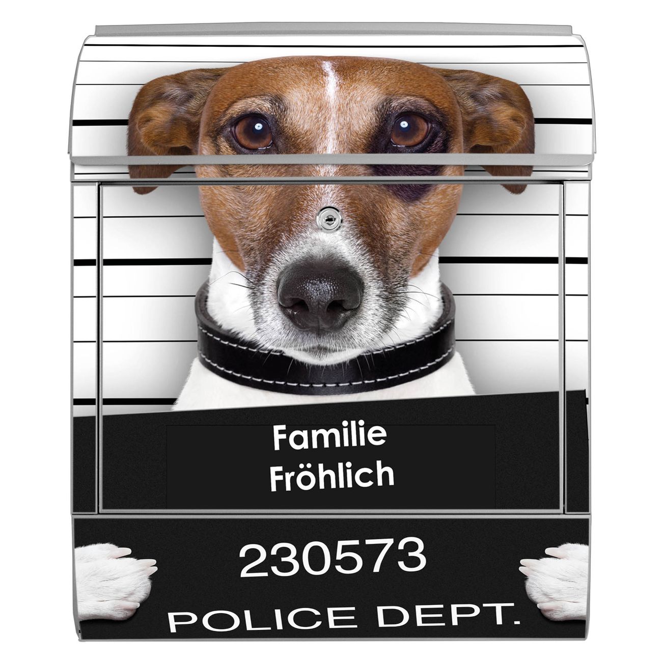 Großer Stahl Briefkasten Motiv Bad Dog Jack Russel