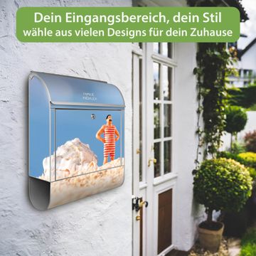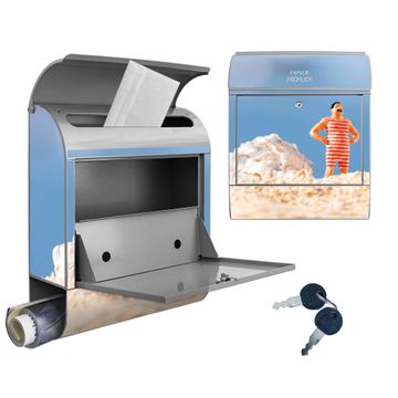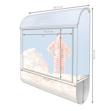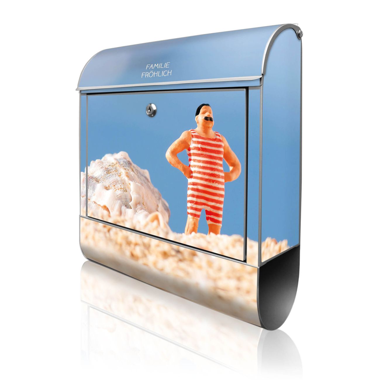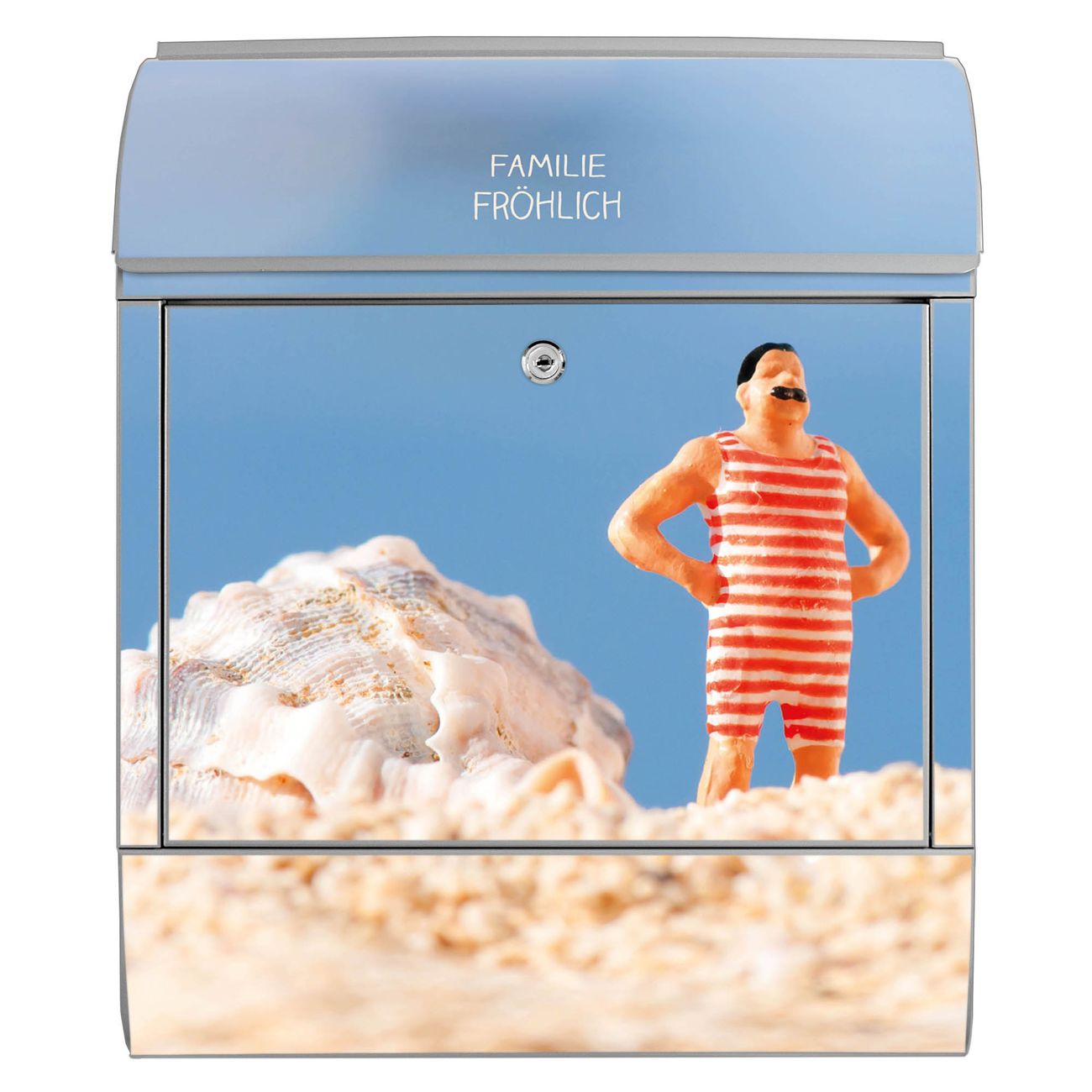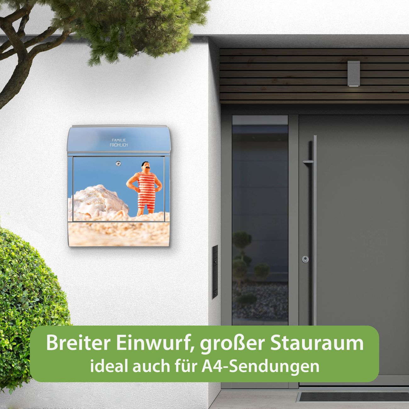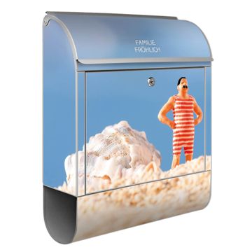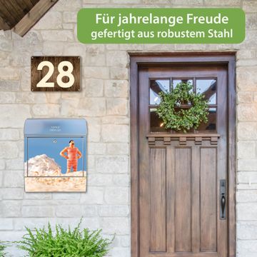 DESIGN: Der Postkasten mit Motiv Motiv Bademeister hat ein sehr ansprechendes und ausgefallenes Design, damit entlocken Sie Ihren Nachbarn und dem Postboten ein Lächeln. Heben Sie Sich von der tristen grauen Masse ab, ohne auf Funktionalität zu verzichten. DETAILS: Der Postkasten besteht aus pulverbeschichtetem Stahl. Er ist 38x46x12,5cm groß. Das Motiv besteht aus einer wetter- und UV-resistenten Folie, die mit einem Schutzlaminat überzogen ist, sodass der Briefkasten zusätzlich vor Kratzern geschützt ist. Der Briefkasten wird mit Montagematerial, zusätzlich zwei Schlüssel sowie einer Bohrschablone geliefert. NUTZEN: Sie können diesen Briefkasten sowohl als Wandbriefkasten montieren oder einen passenden Ständer kaufen und als Standbriefkasten einbetonieren. Die Größe bietet genügend Platz für Sendungen aller Art, der Einwurf fasst auch größere A4 Sendungen. BANJADO: Ihr Briefkasten wird in Sachsen in einer kleinen Manufaktur von Hand veredelt. Die Motivfolie ist lösungsmittelfrei und schutzlaminiert für einen langen Halt. Wir legen großen Wert auf die Verbindung von Funktionalität und Design. Sie erhalten Handarbeit aus Sachsen.