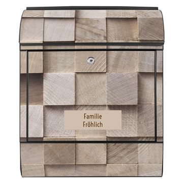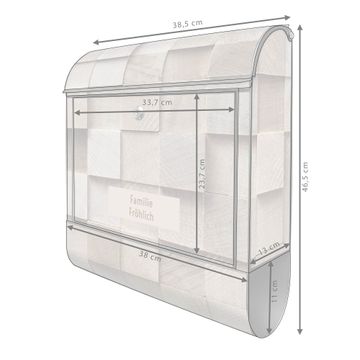 DESIGN: Der Postkasten mit Motiv Motiv Bauklötze Relief hat ein sehr ansprechendes und ausgefallenes Design, damit entlocken Sie Ihren Nachbarn und dem Postboten ein Lächeln. Heben Sie Sich von der tristen grauen Masse ab, ohne auf Funktionalität zu verzichten. DETAILS: Der Postkasten besteht aus pulverbeschichtetem Stahl. Er ist 38x46x12,5cm groß. Das Motiv besteht aus einer wetter- und UV-resistenten Folie, die mit einem Schutzlaminat überzogen ist, sodass der Briefkasten zusätzlich vor Kratzern geschützt ist. Der Briefkasten wird mit Montagematerial, zusätzlich zwei Schlüssel sowie einer Bohrschablone geliefert. NUTZEN: Sie können diesen Briefkasten sowohl als Wandbriefkasten montieren oder einen passenden Ständer kaufen und als Standbriefkasten einbetonieren. Die Größe bietet genügend Platz für Sendungen aller Art, der Einwurf fasst auch größere A4 Sendungen. BANJADO: Ihr Briefkasten wird in Sachsen in einer kleinen Manufaktur von Hand veredelt. Die Motivfolie ist lösungsmittelfrei und schutzlaminiert für einen langen Halt. Wir legen großen Wert auf die Verbindung von Funktionalität und Design. Sie erhalten Handarbeit aus Sachsen.